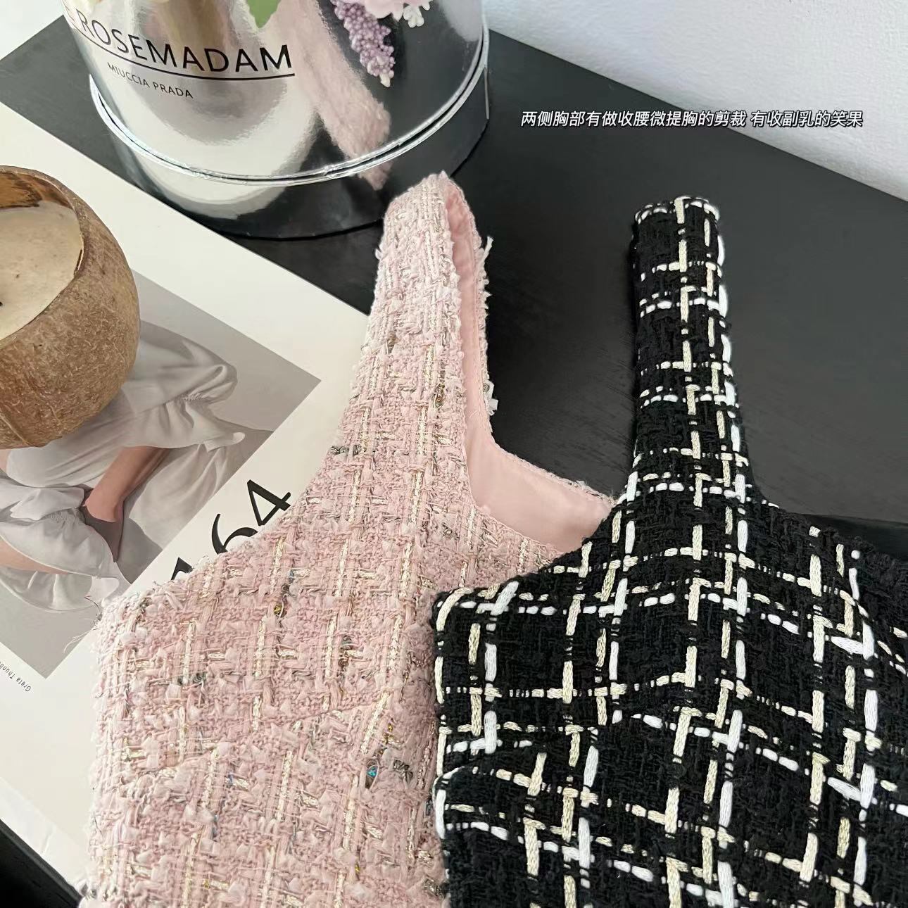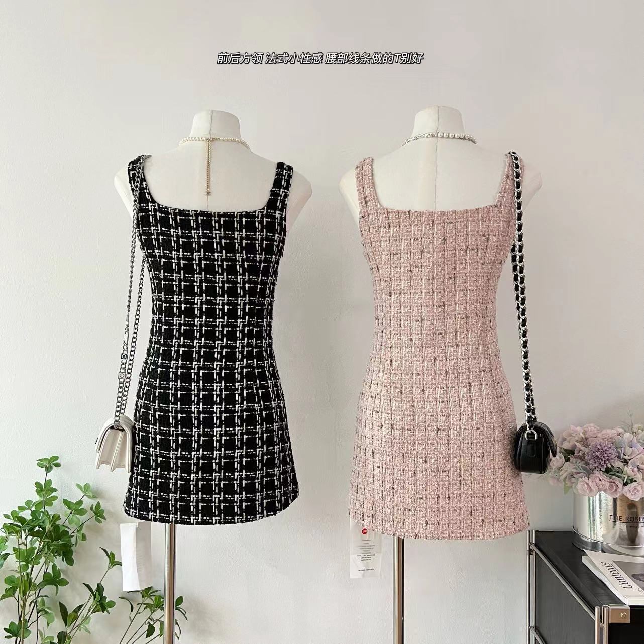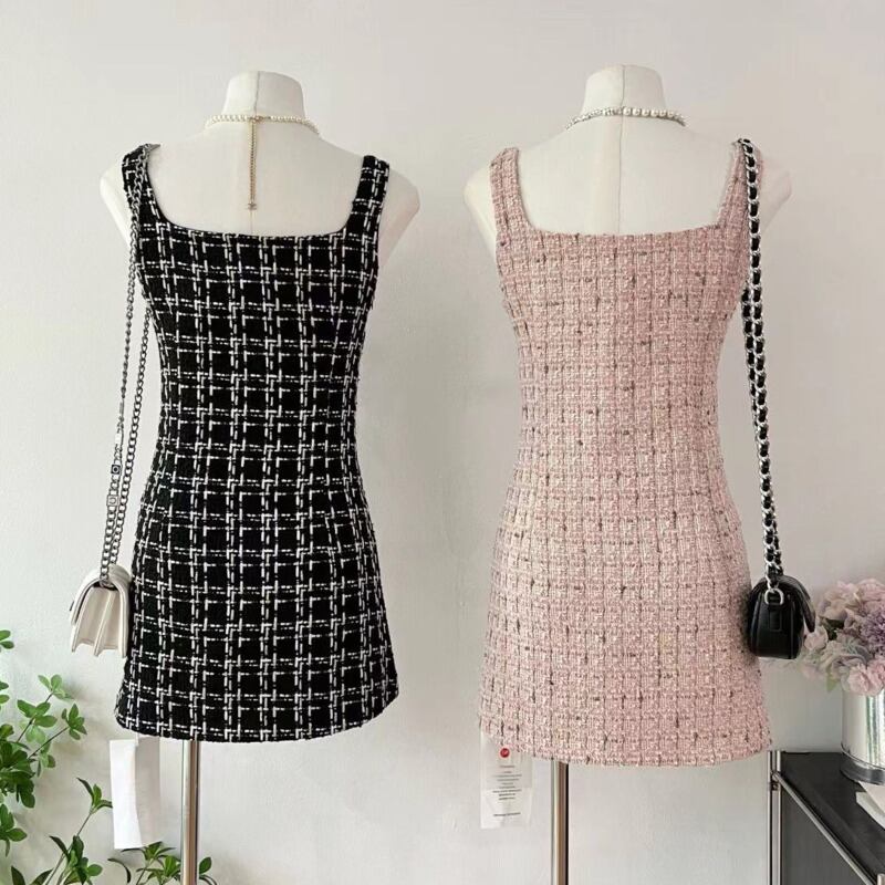 2024 夏小さフレグランツイードドレススウィートミニドレスガールズパーティードレスレディ Vestidos 大人ガーリー キュート カジュアル サマー 夏物