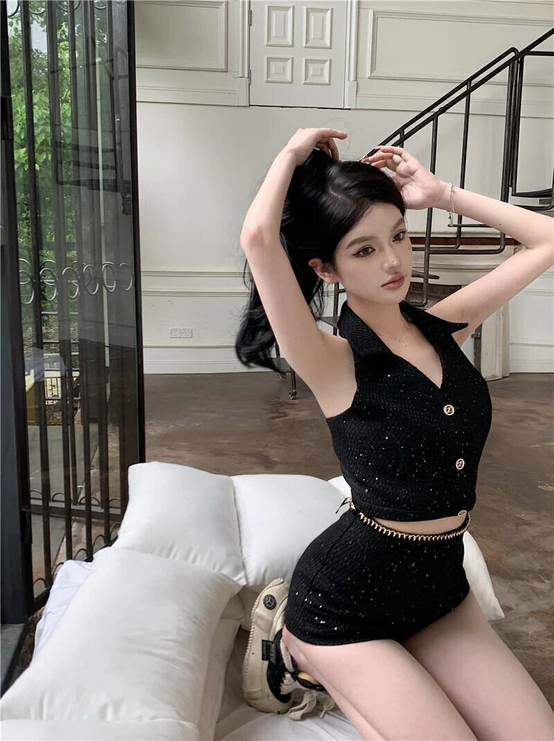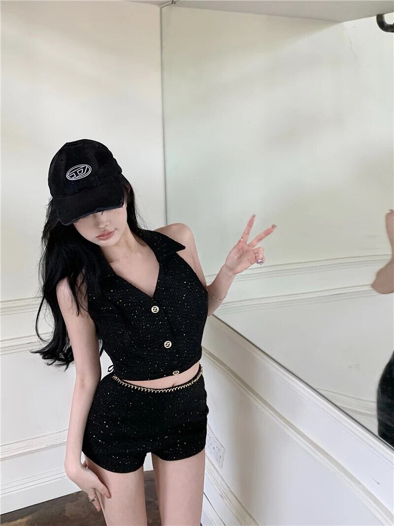 ストリート小さ香り 2 ピースセット衣装 HotSweet セクシークロップトップ + ショートセット夏ビーチツーピースパンツセット 大人ガーリー スウィート キュート カジュアル サマー 夏物