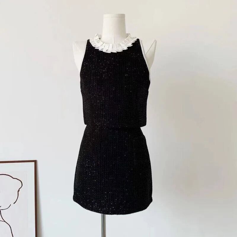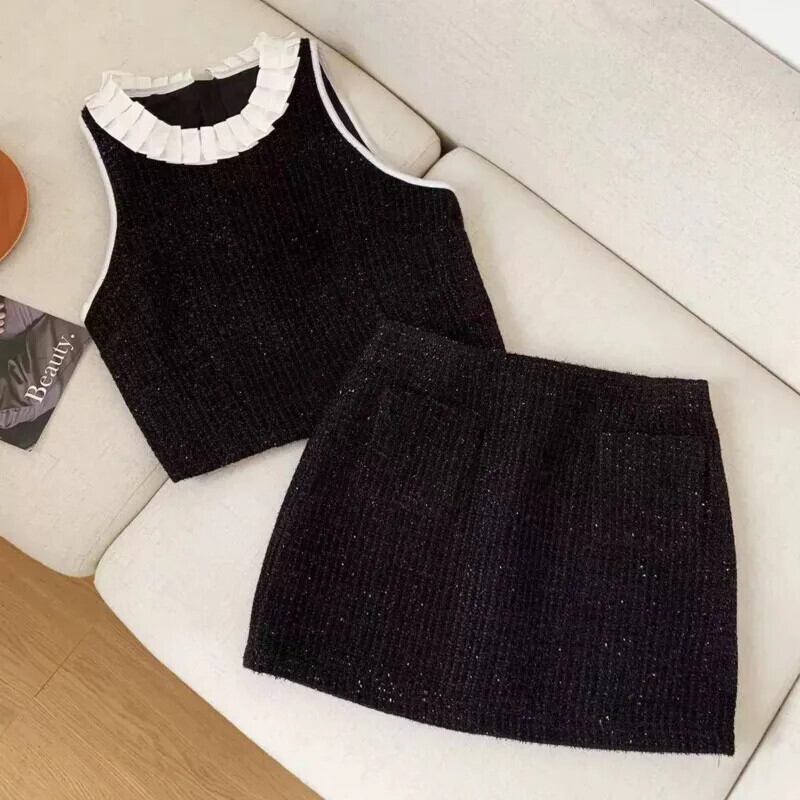 ストリートフレンチ小さ香りツイードトップス + スカート 2 点セット 2024 夏スーツ サマー 夏物