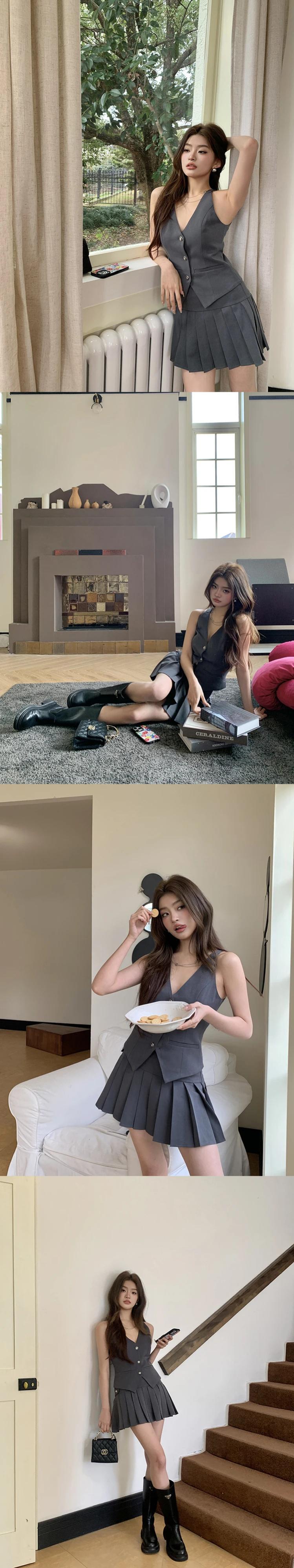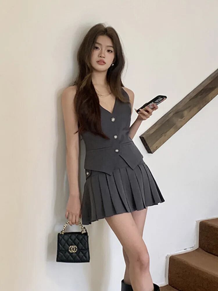 OL スモールフレグランス 2 ピースセット衣装ベストトップス + プリーツスカートセット夏ツーピーススーツ サマー 夏物