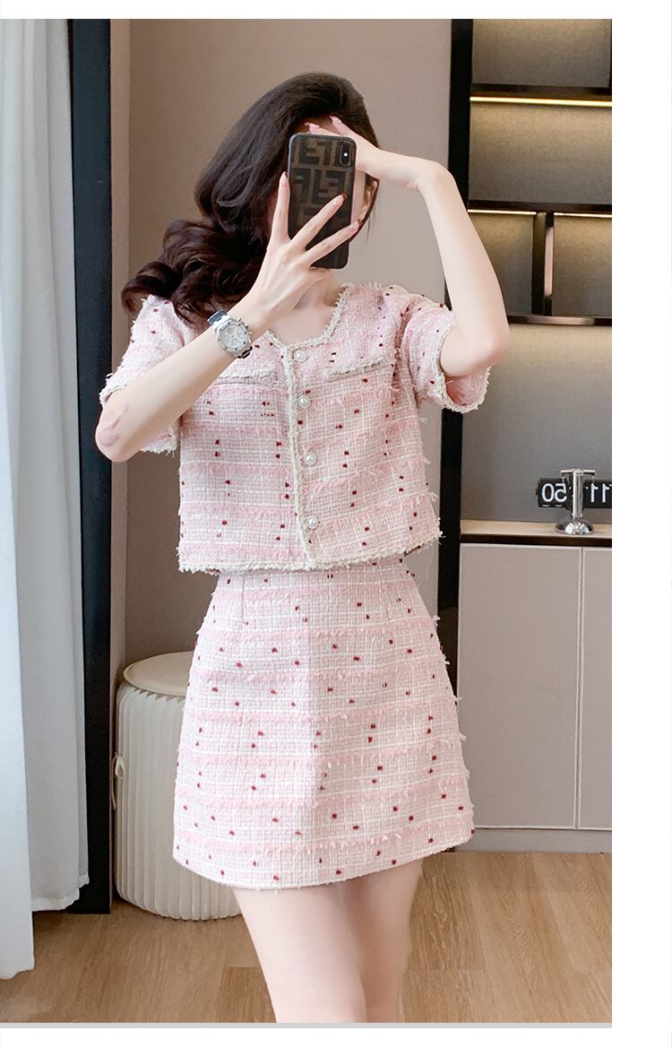 小さ香りスーツスカートセット 2024 夏フレンチスイートツーピースセット衣装 大人ガーリー スウィート キュート カジュアル サマー 夏物