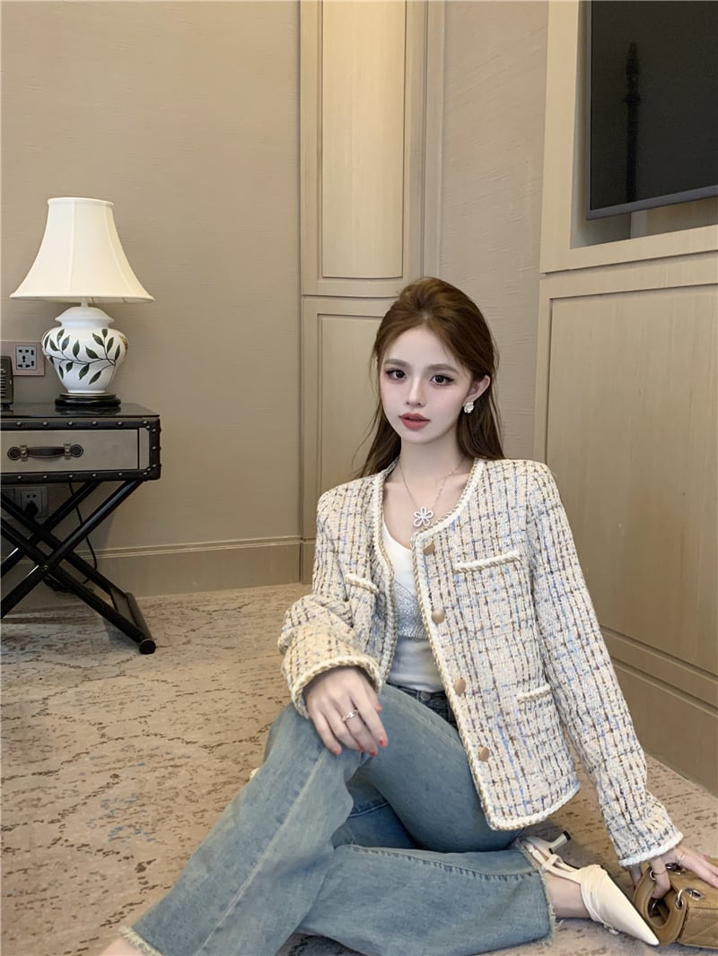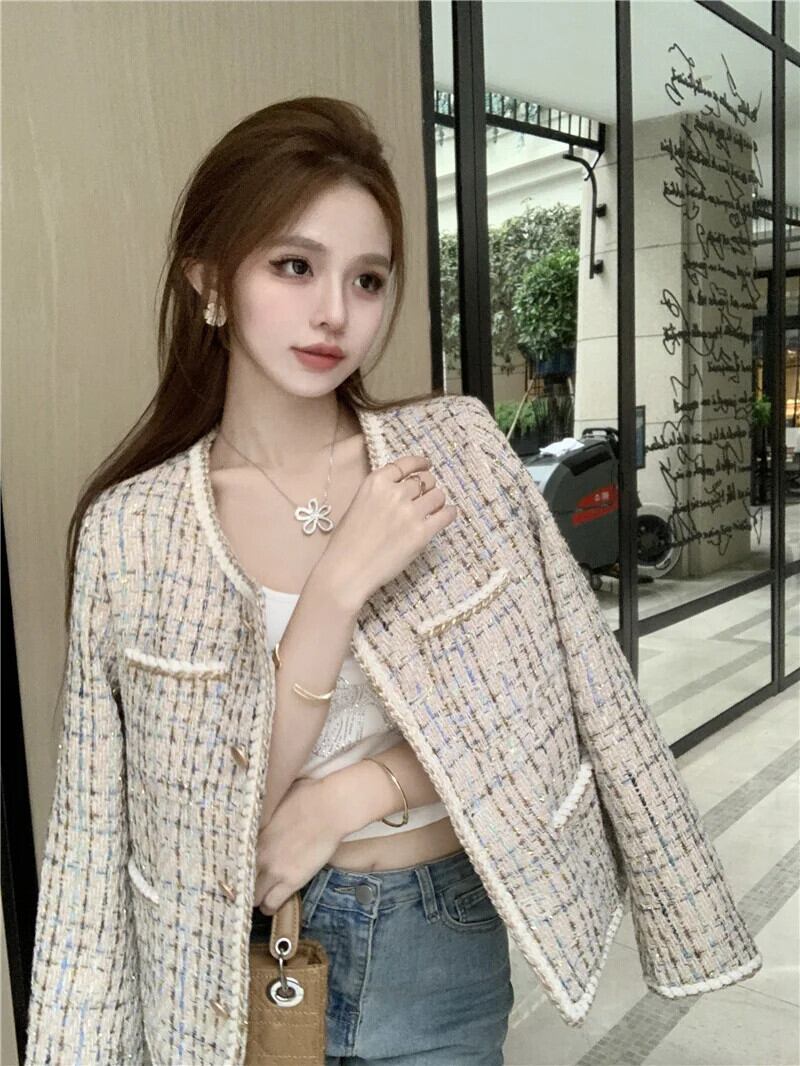 レディスウィートスモールフレグランスツイードジャケットコートウールコートストリートスリムアウター 大人ガーリー キュート カジュアル