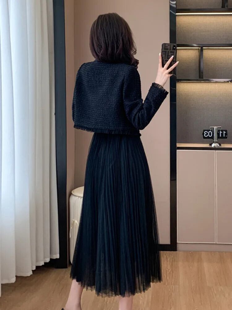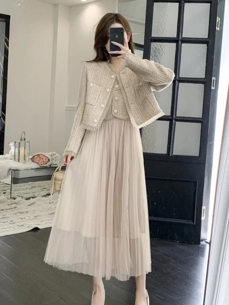 2024 春小さ香り高級 2 点セットジャケットコート + ロングドレスセット 2 点セット スプリング 春物