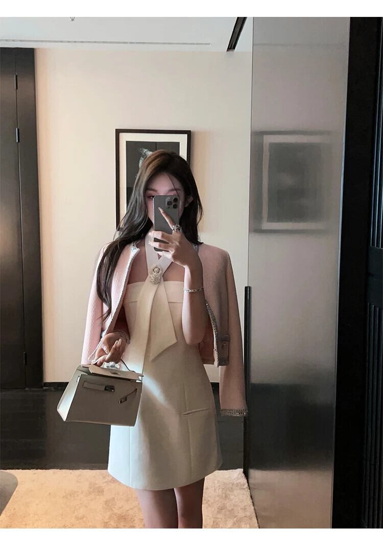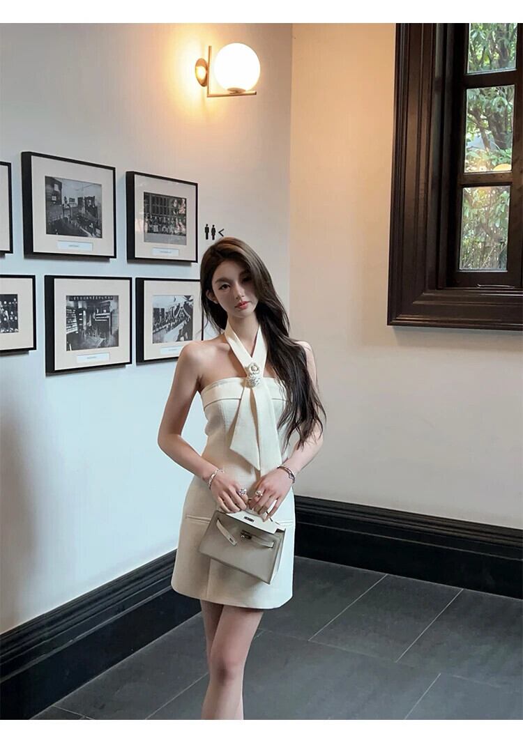 甘い小さ香りツイードドレス 2024 フレンチ 3D フラワーサマードレス Hotsweet セクシータンクパーティードレス 大人ガーリー スウィート キュート カジュアル 夏物 フラワーデザイン