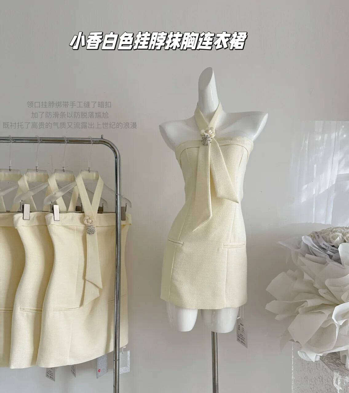 小さ香り Hotsweet セクシーイブニングドレス 2024 夏甘い 3D 花パーティードレス Vestidos ローブ 大人ガーリー スウィート キュート カジュアル サマー 夏物 フラワーデザイン