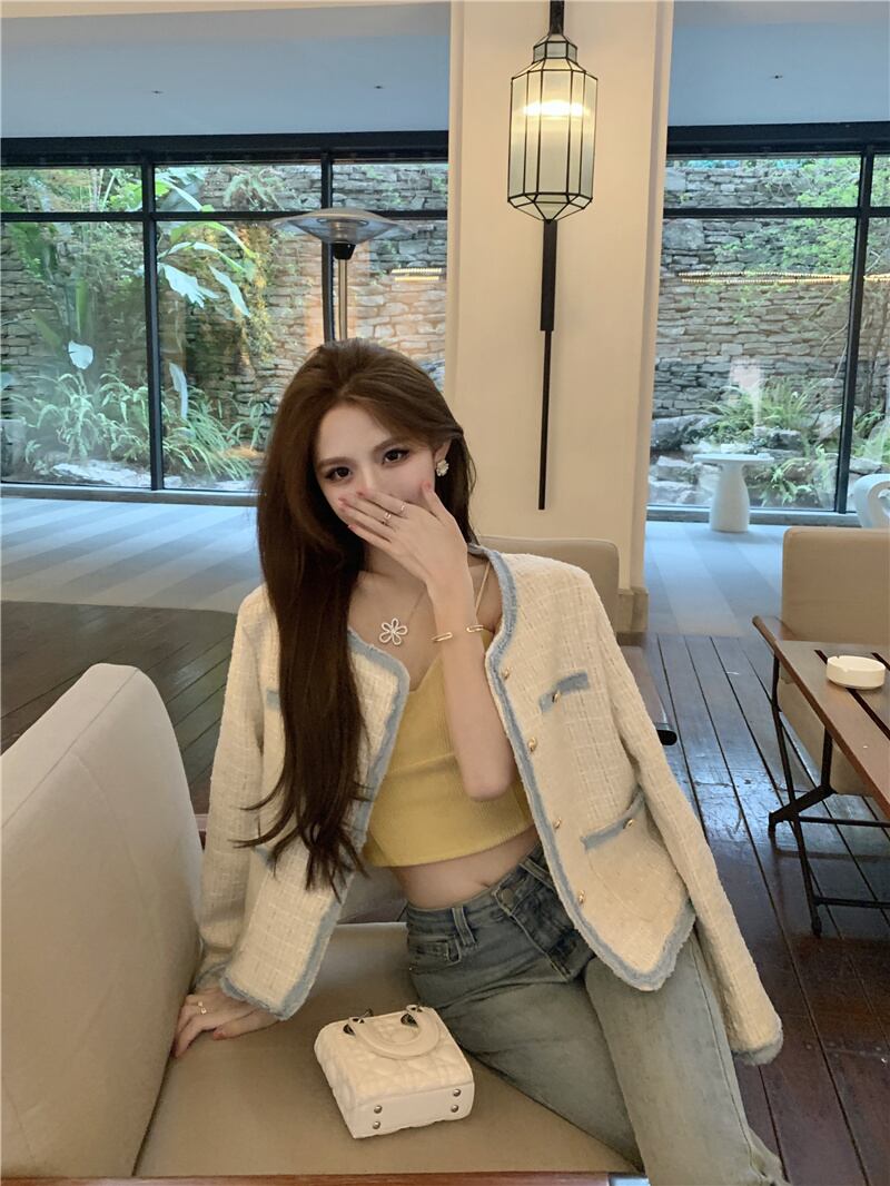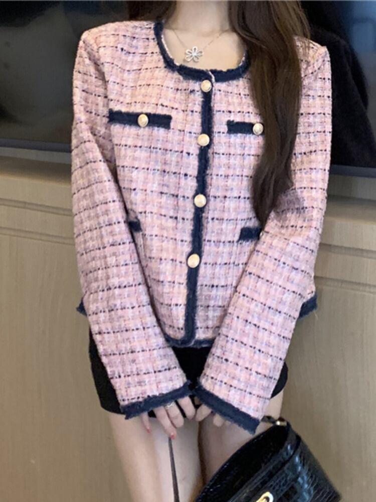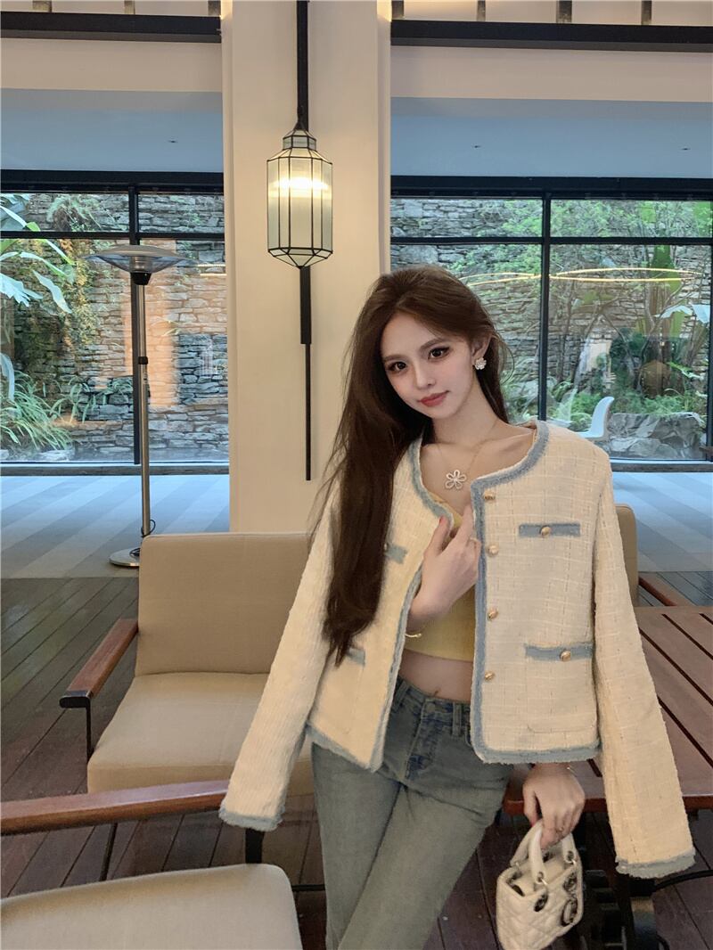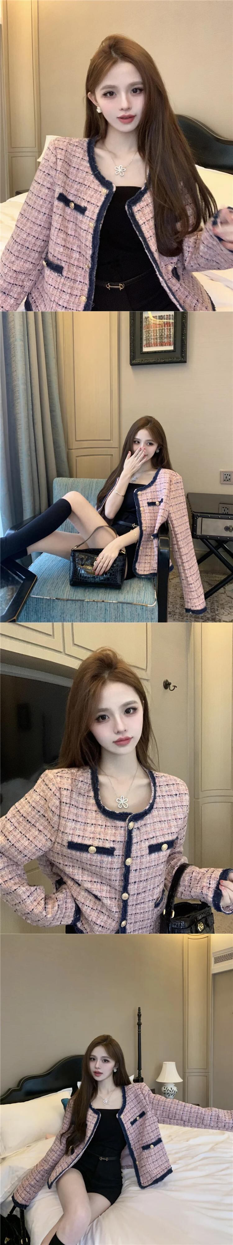 スイートスモールフレグランスツイードジャケットコートウールコートスリムアウター 大人ガーリー スウィート キュート カジュアル
