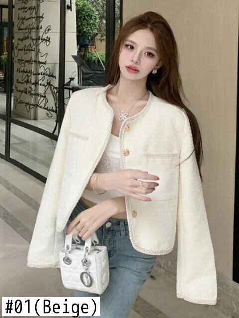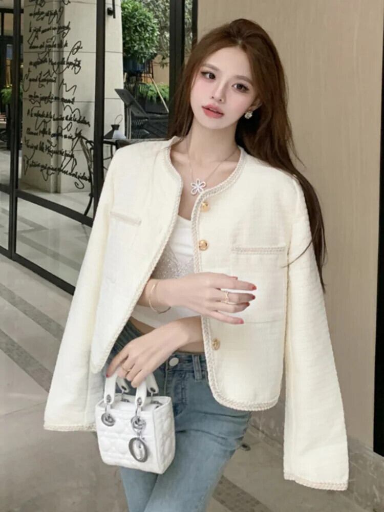 2024 春フレンチスモールフレグランスツイードジャケットコートウールコートストリートスリムアウター スプリング 春物