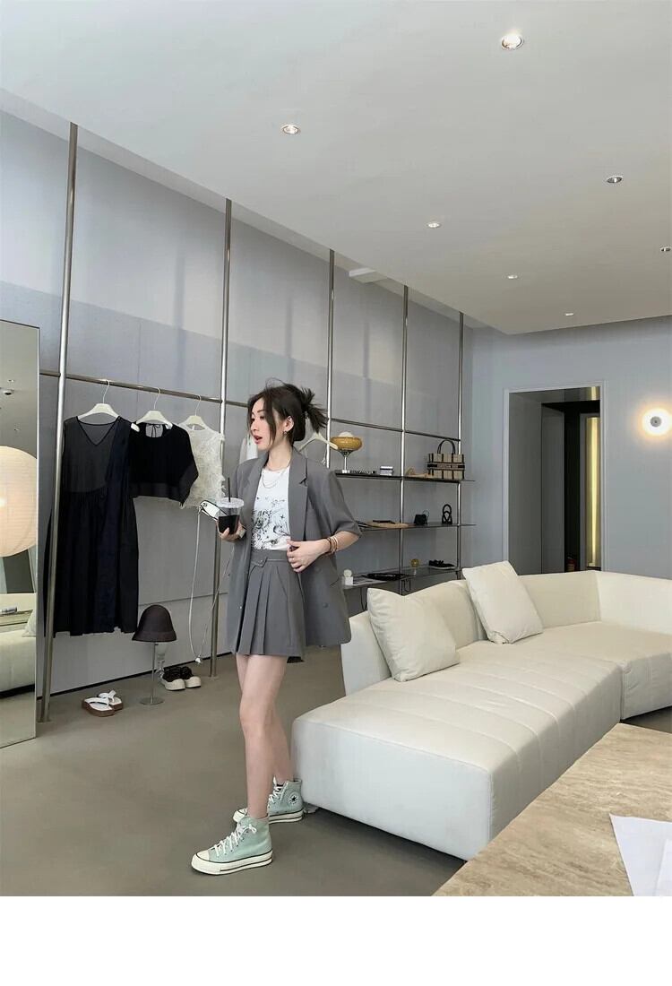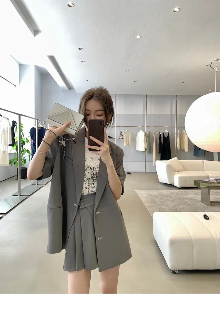 半袖スーツジャケット + ショートセット 2024 夏 OL 気質ツーピースセットルーズパンツセット ハーフスリーブ サマー 夏物