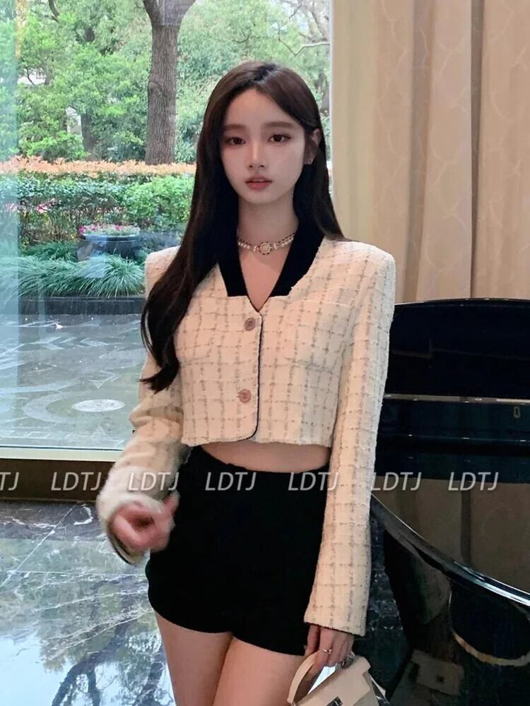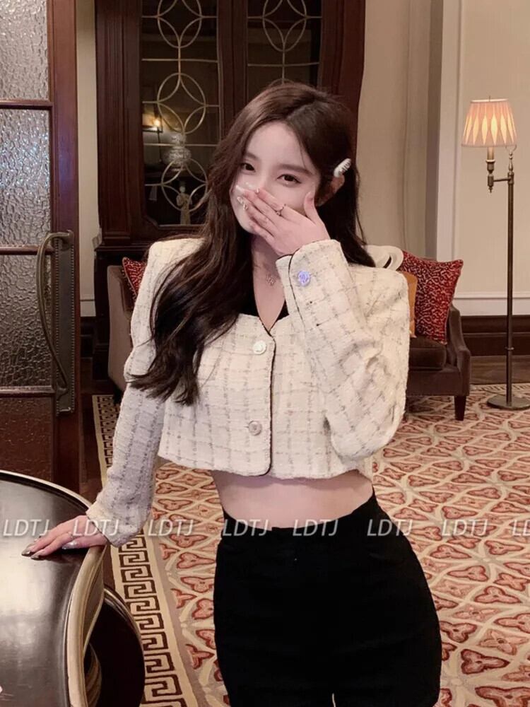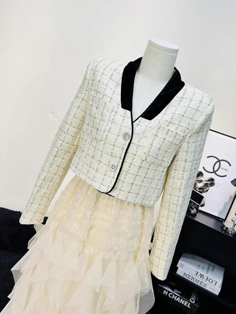 フレンチ スモール フレグランス ツイード ジャケット コート レディース 春 フライド ストリート ショート コート チェック柄 アウター スプリング 春物