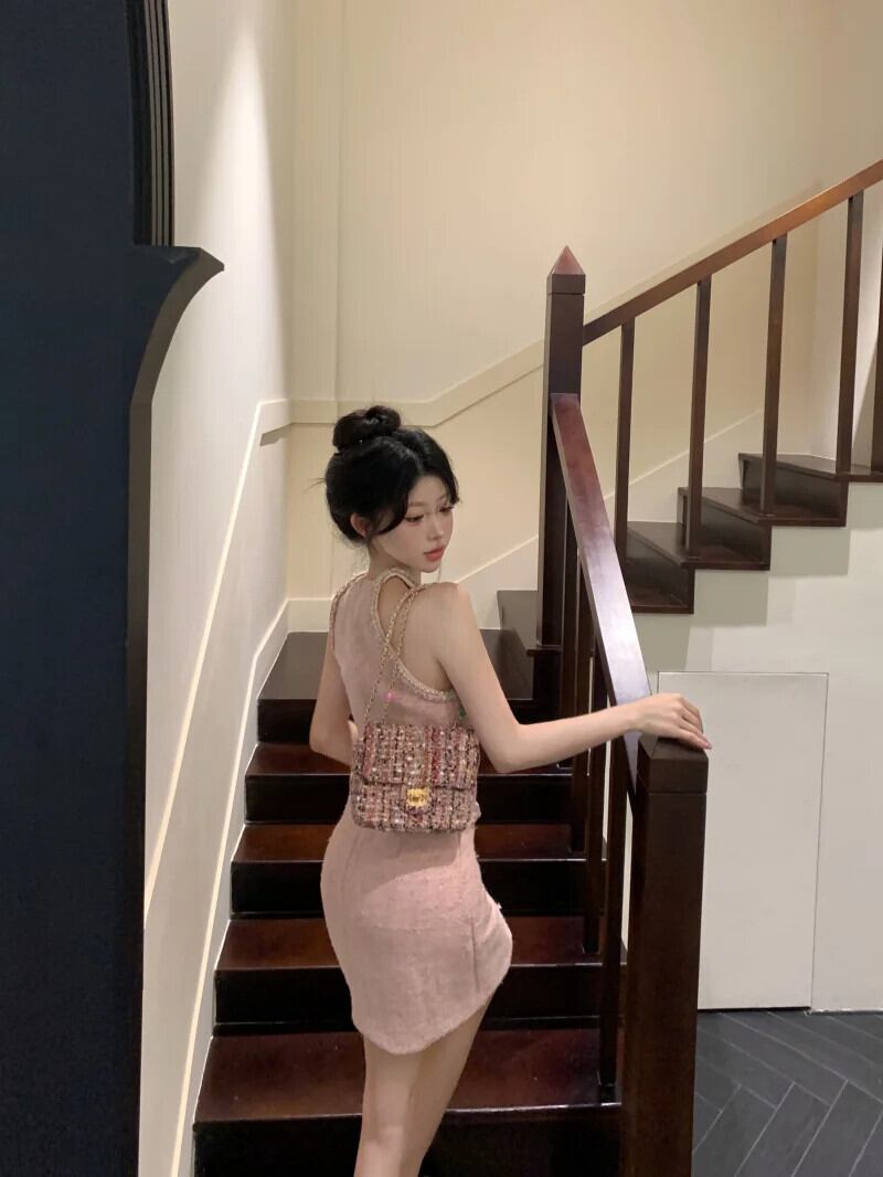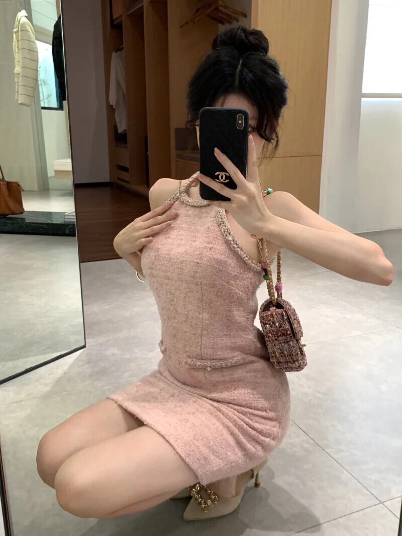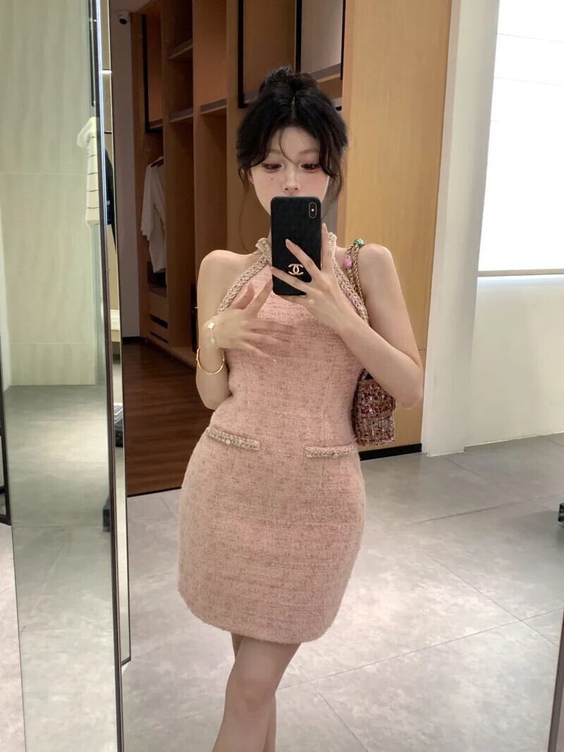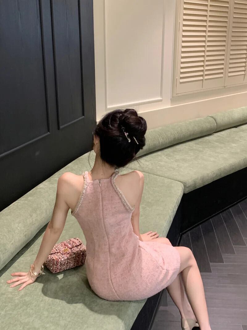 フレンチレディミニサマードレススモールフレグランスセクシーパーティーツイードドレス2024 夏物