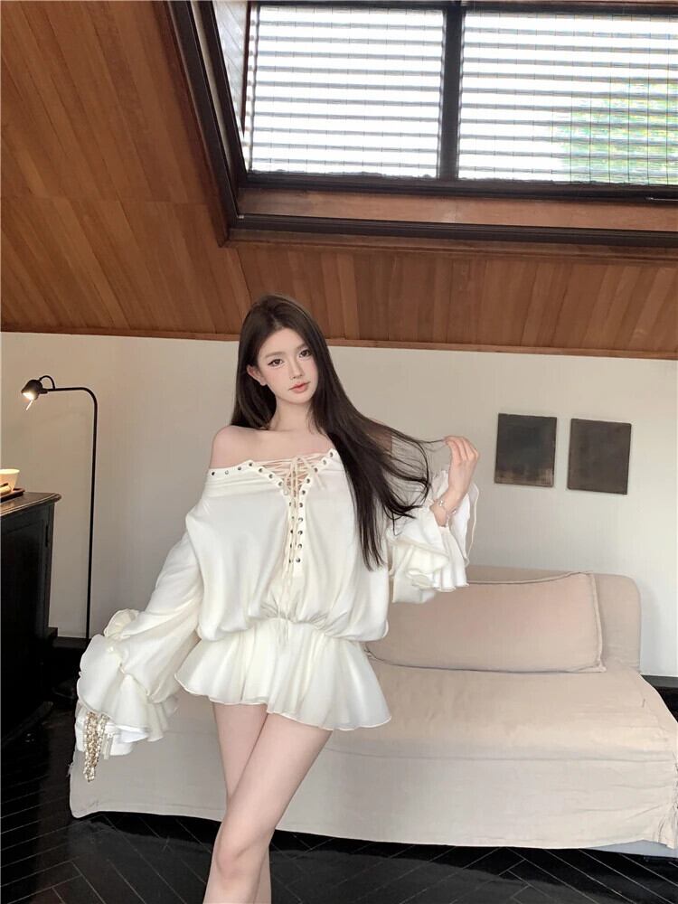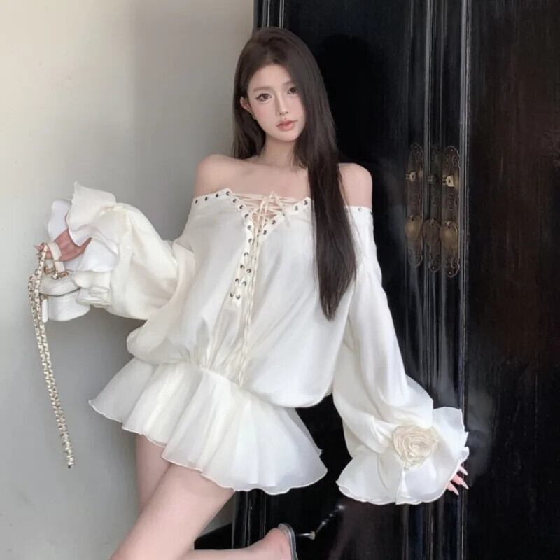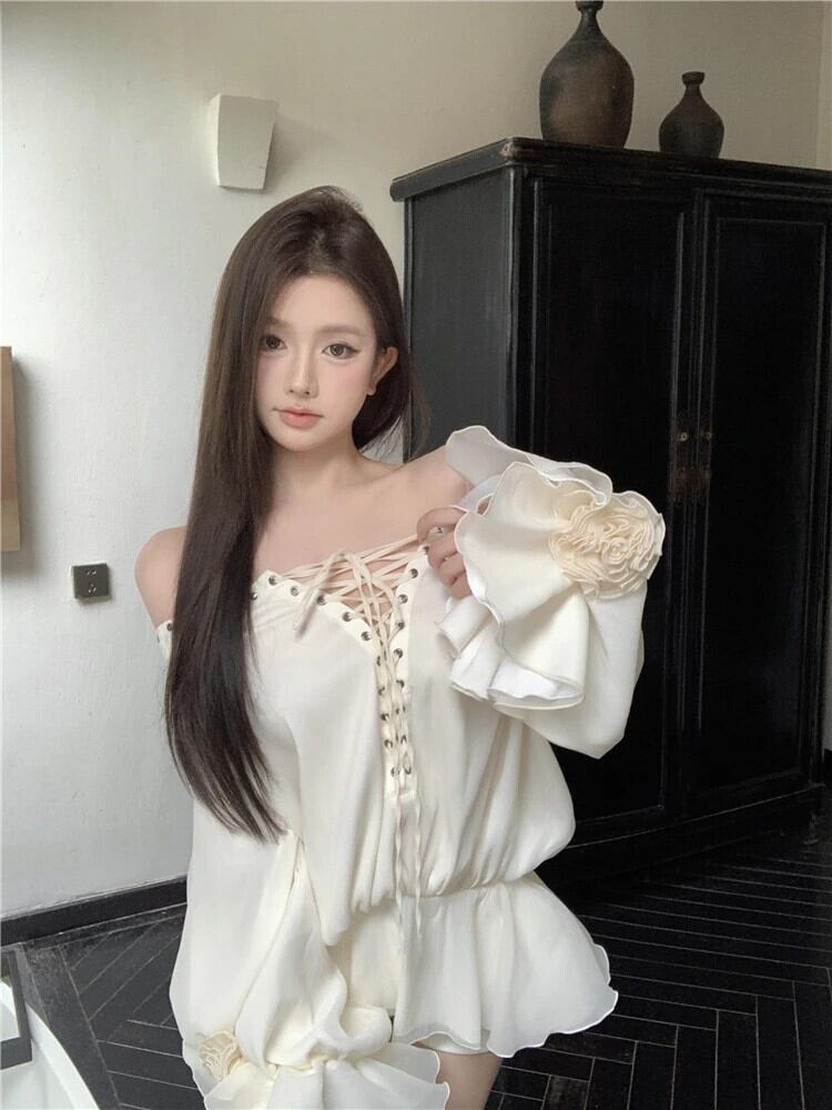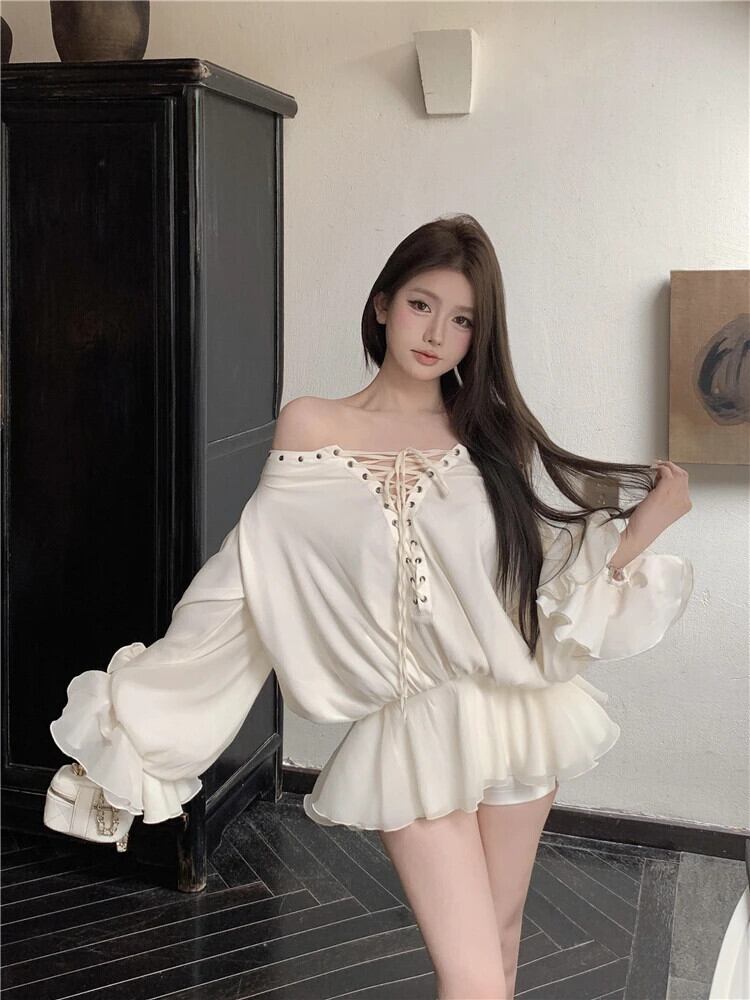 フレンチラグジュアリーレディシャツ&ブラウスフライドストリートルーズフリルエッジパッチワークフラワートップス フラワーデザイン