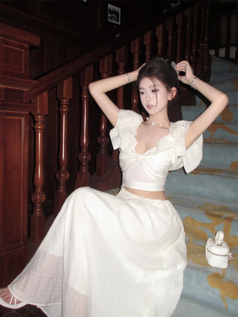 2024 Qulity ビーチ休暇サマードレスフライングスリーブロングドレス Vestidos 夏物