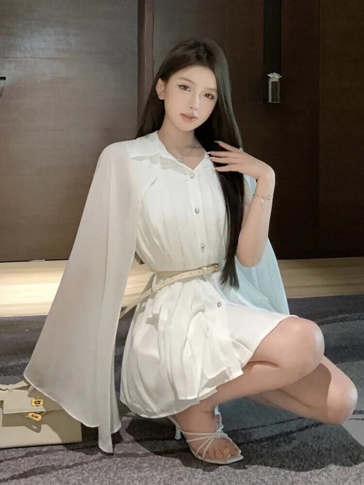 2024 夏フレンチ 2 ピーススーツルーズシャツ + プリーツスカートセット 2 点セット サマー 夏物