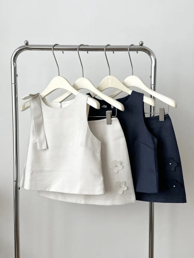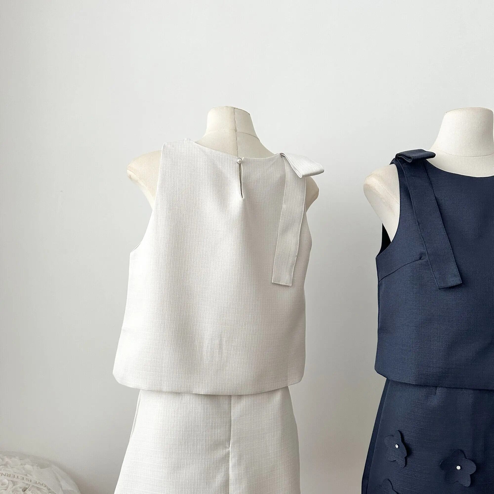 小さフレグランス 2 ピースセット弓クロップトップ + ミニスカートセット夏甘いツーピーススーツ リボン 大人ガーリー スウィート キュート カジュアル サマー 夏物
