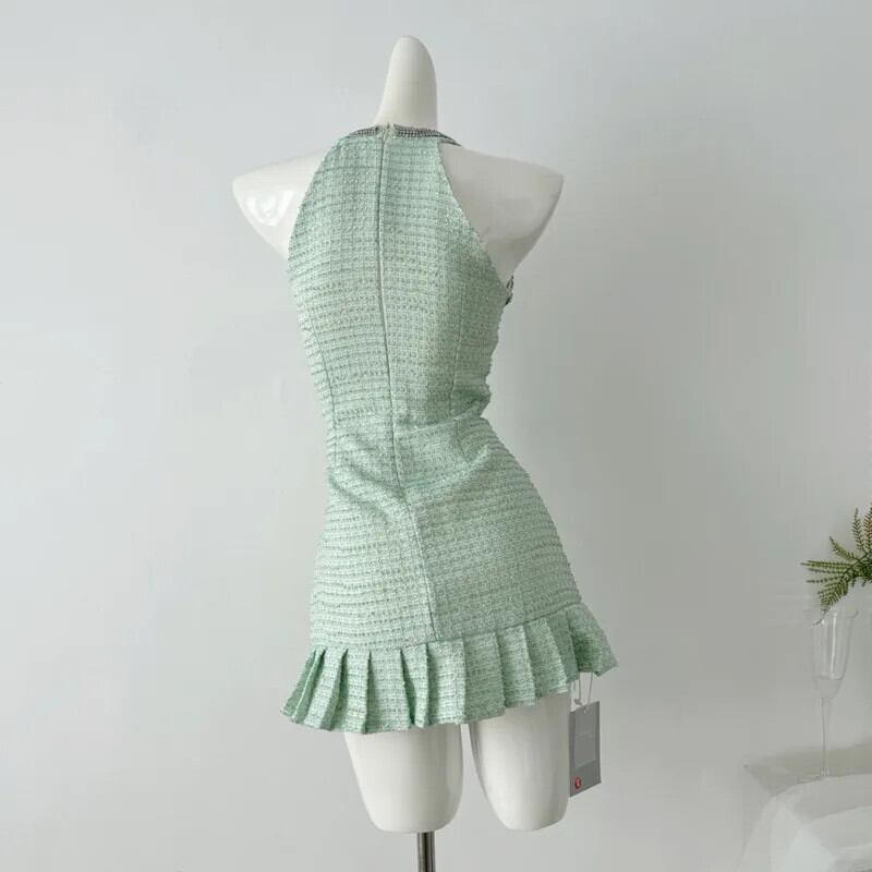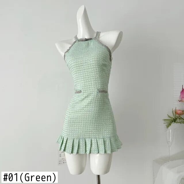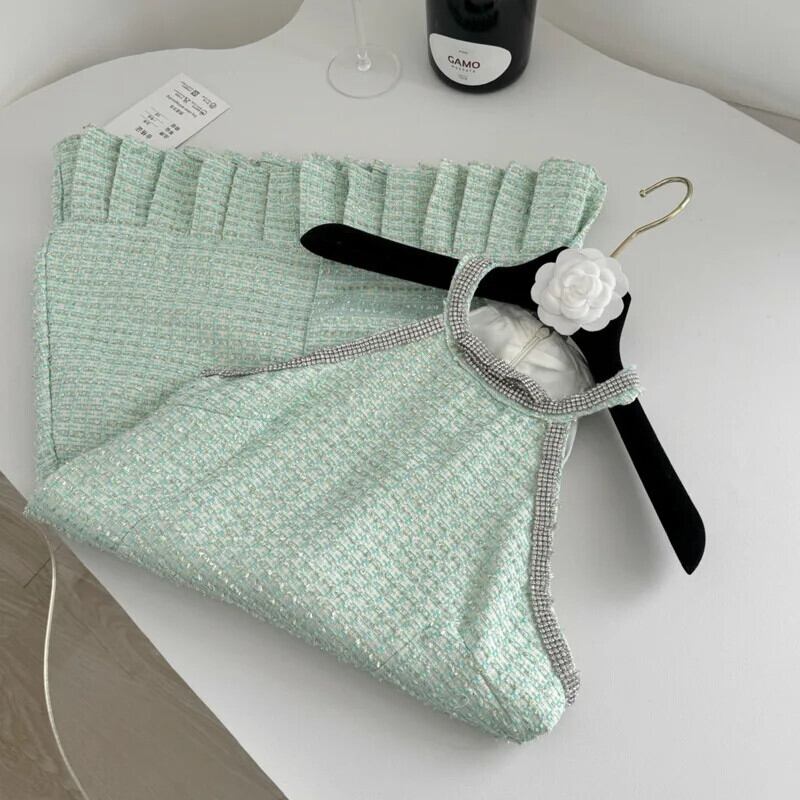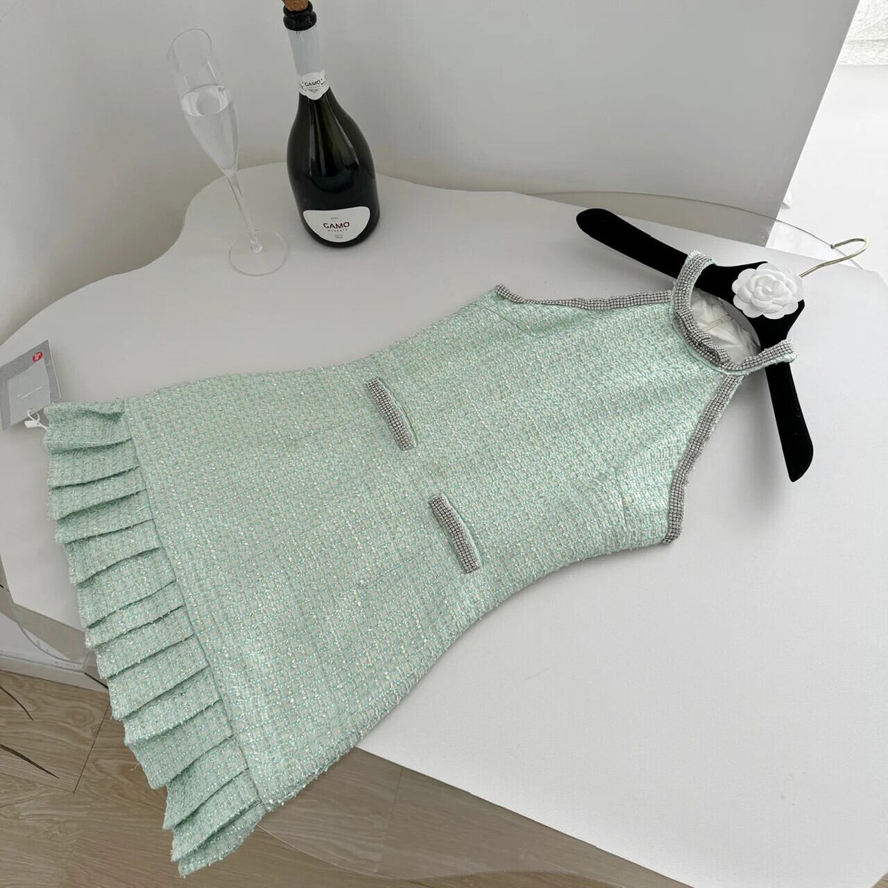 フレンチ高級ダイヤモンド小さ香りツイードドレス 2024 夏 Hotsweet ぶら下げスリムウエストプリーツドレス 大人ガーリー スウィート キュート カジュアル サマー 夏物