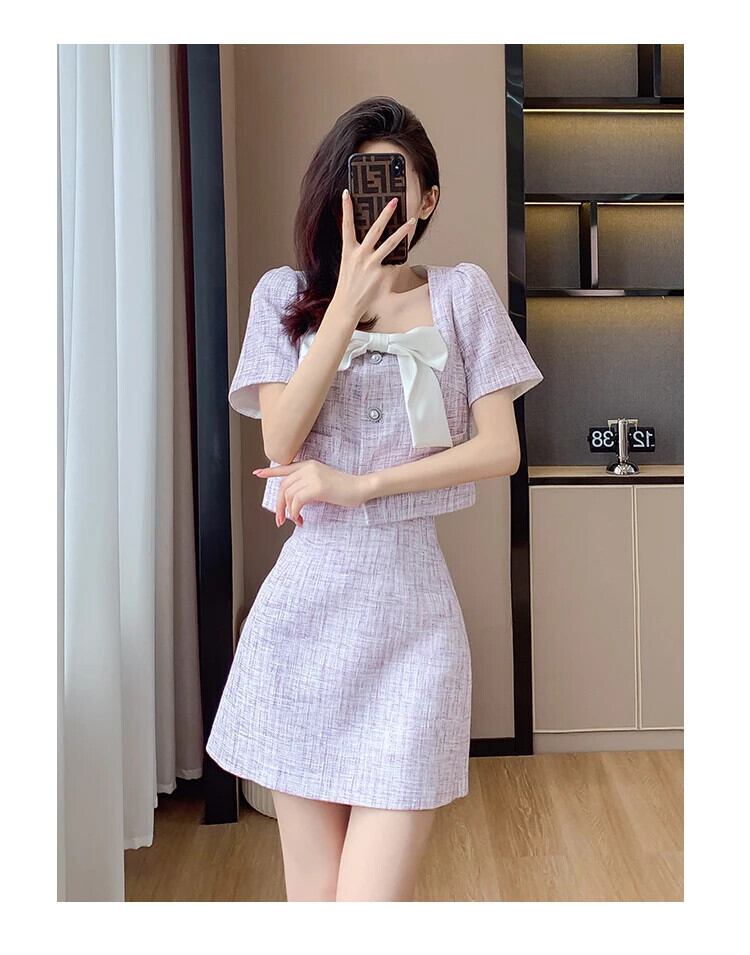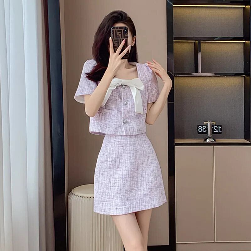 フランス小さ香り甘い 2 点セットシャツクロップトップ + スカートスーツ夏 2 点セット衣装 大人ガーリー スウィート キュート カジュアル サマー 夏物