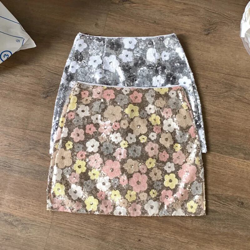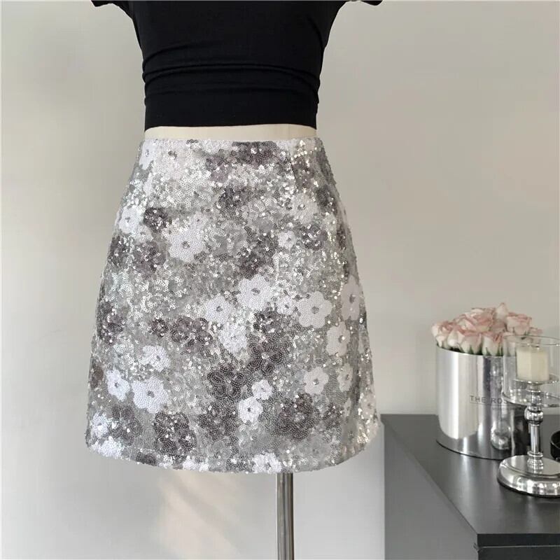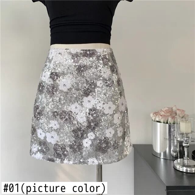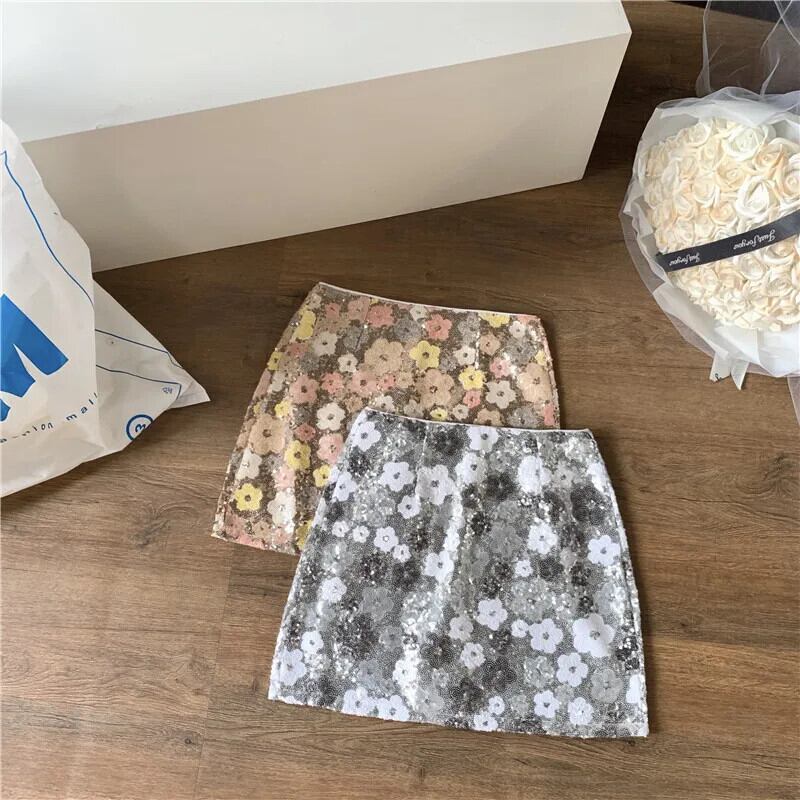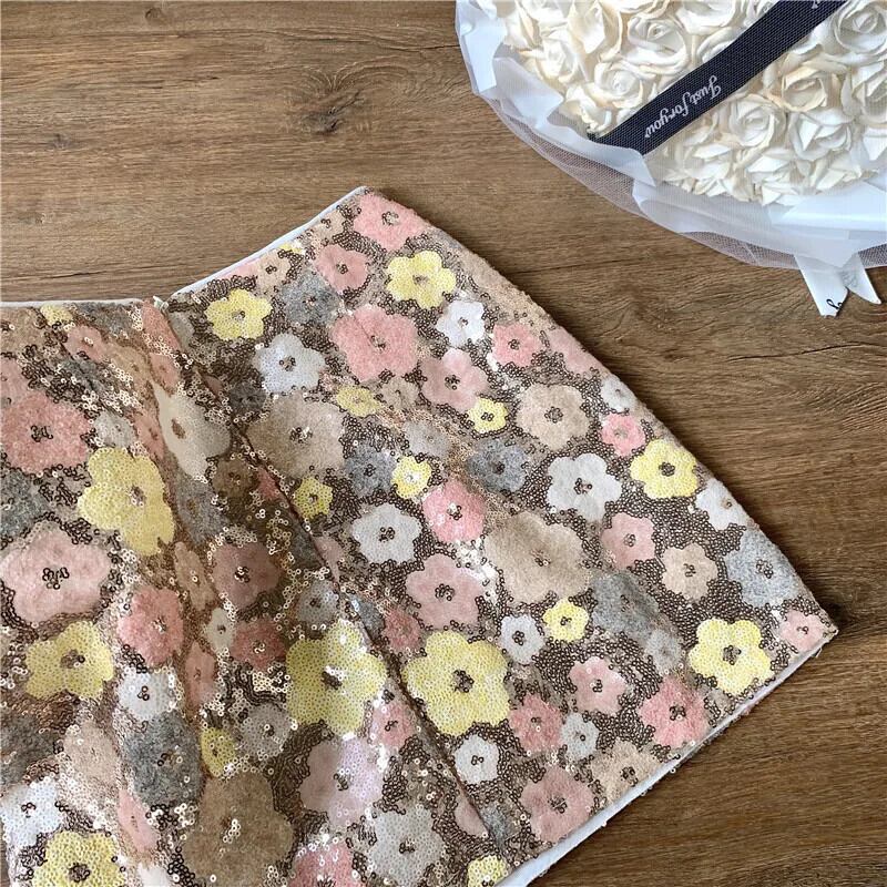 2024 夏フレンチ高級スパンコール花小さ香りスカートストリートスリムショートスカート サマー 夏物 フラワーデザイン