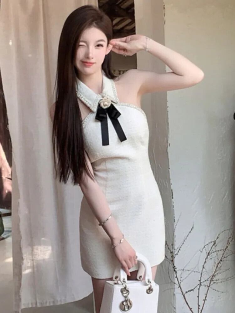 2024 夏小さ香りツイードイブニングドレス Hotsweet セクシーパーティーショート Vestidos ストリートミニドレス 大人ガーリー スウィート キュート カジュアル サマー 夏物