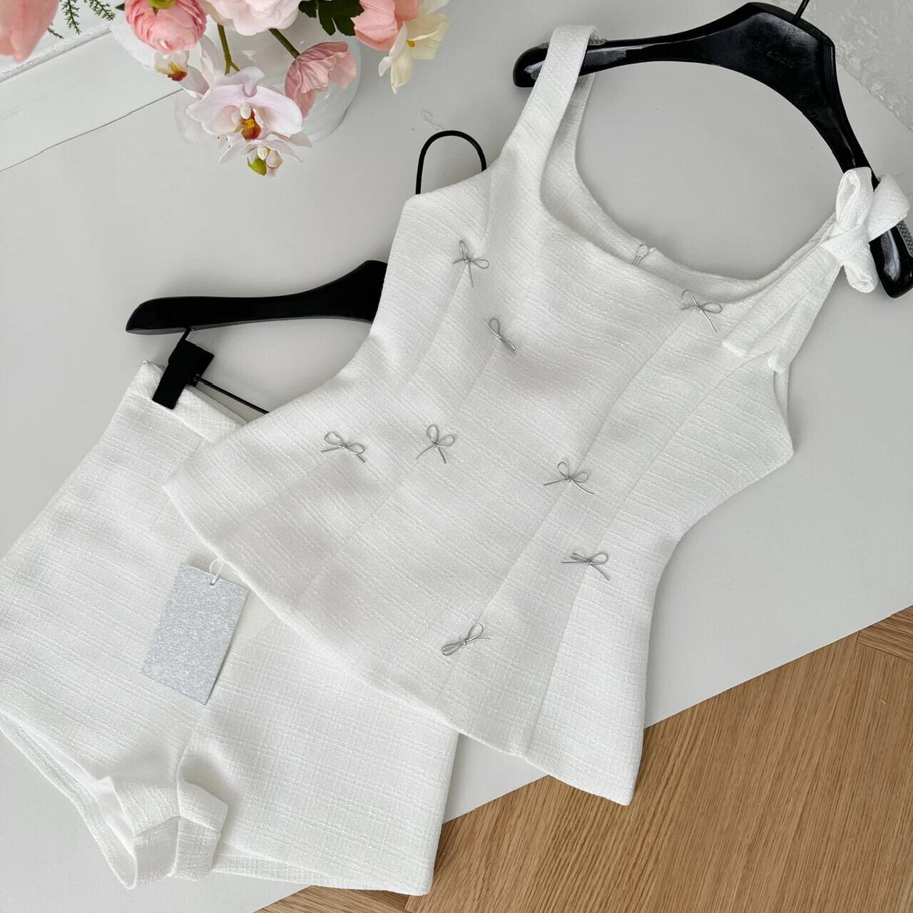 ガール Hotsweet 夏フランス弓タンクトップ + ショート セット スーツ甘い小さ香りツーピース パンツ セット リボン 大人ガーリー スウィート キュート カジュアル サマー 夏物