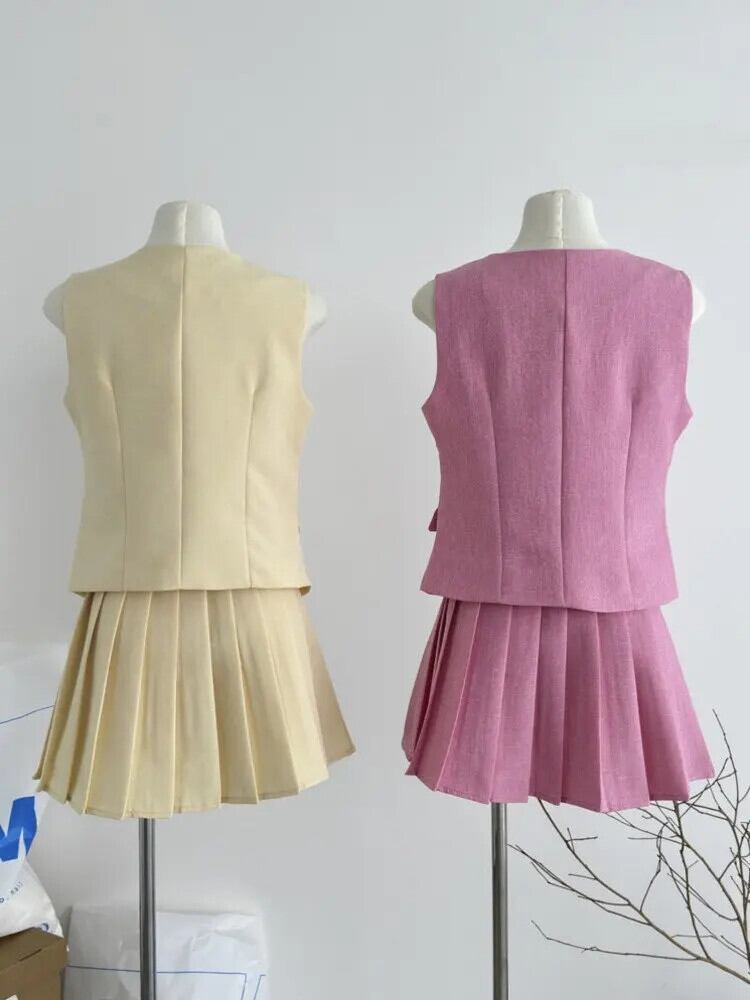夏ストリート衣装 2 点セットベストトップス + A ラインミニプリーツスカートスーツ Conjuntos Cortos サマー 夏物 Aライン