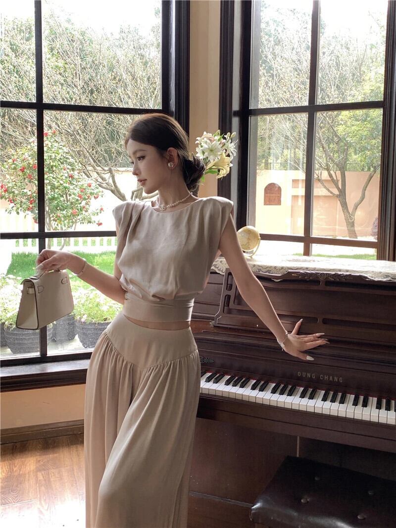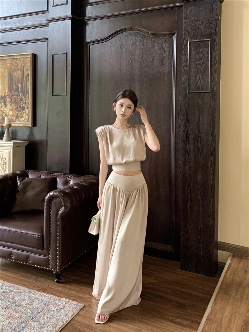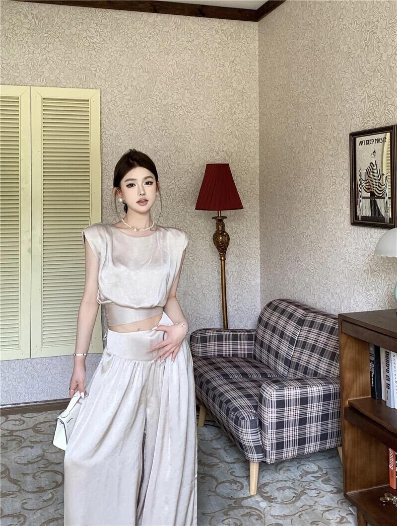 2024 夏ツーピースセットブラウス + ワイドレッグパンツセット 2 点セット衣装 conjuntos femininos エレガント サマー 夏物 ワイドパンツ