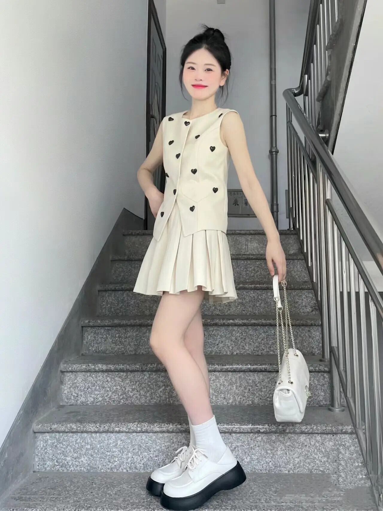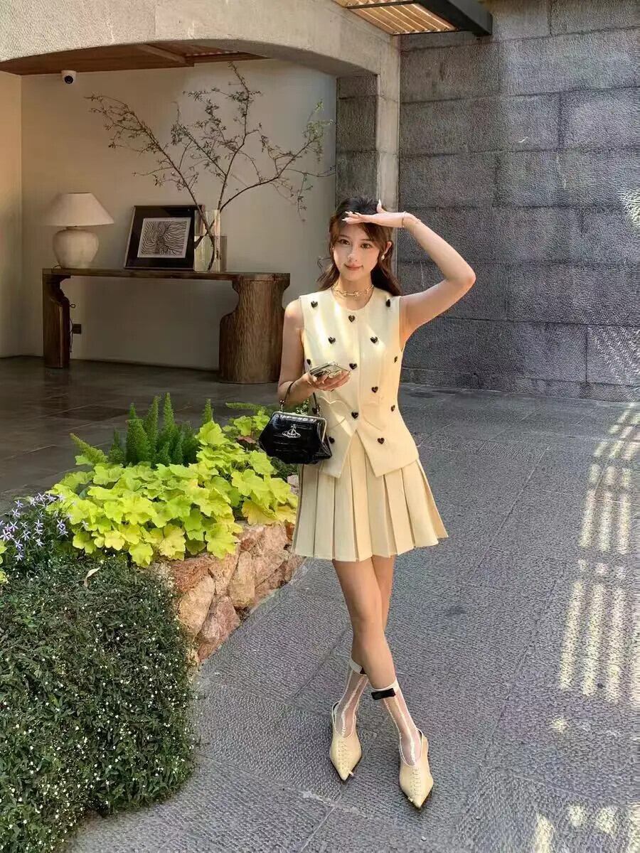 OL 2 点セットブレザーベストトップ + プリーツスカートツーピーススーツ小さフレグランス衣装