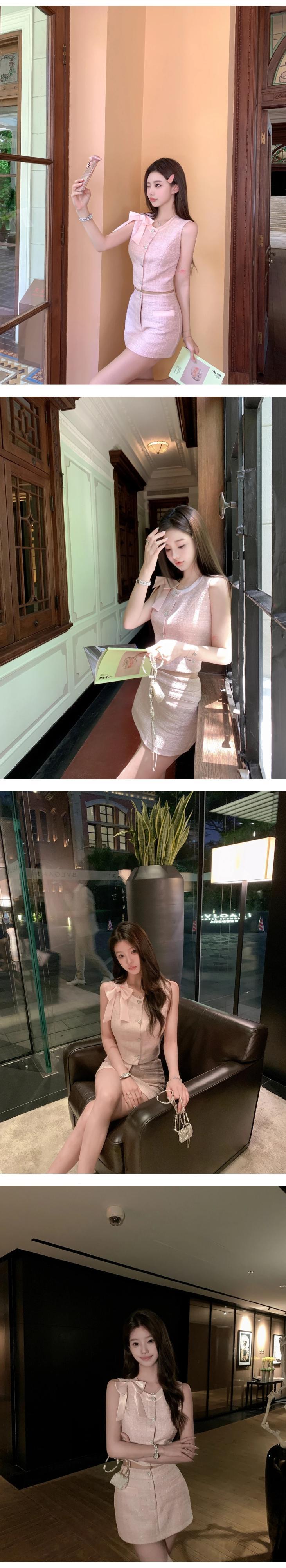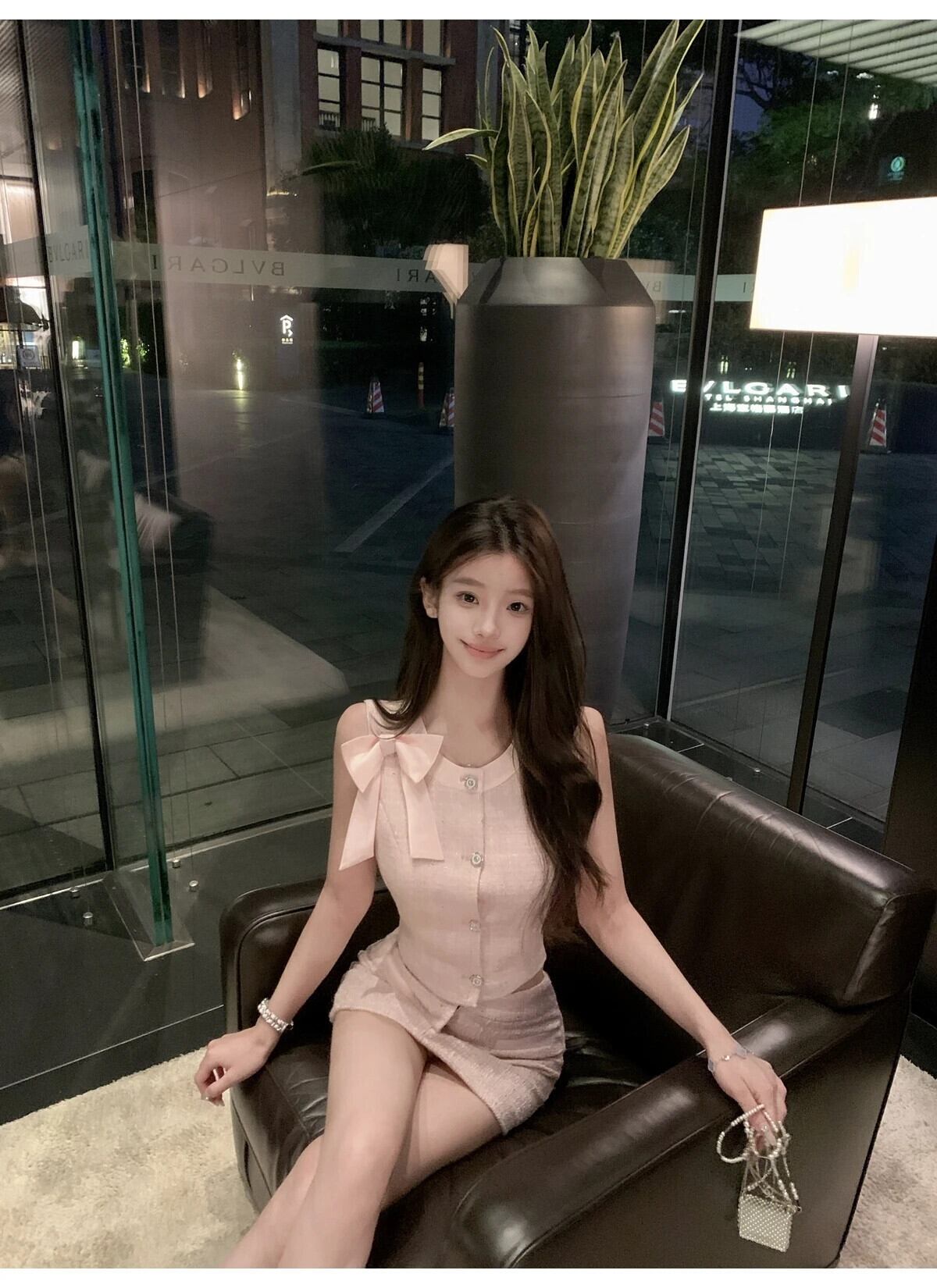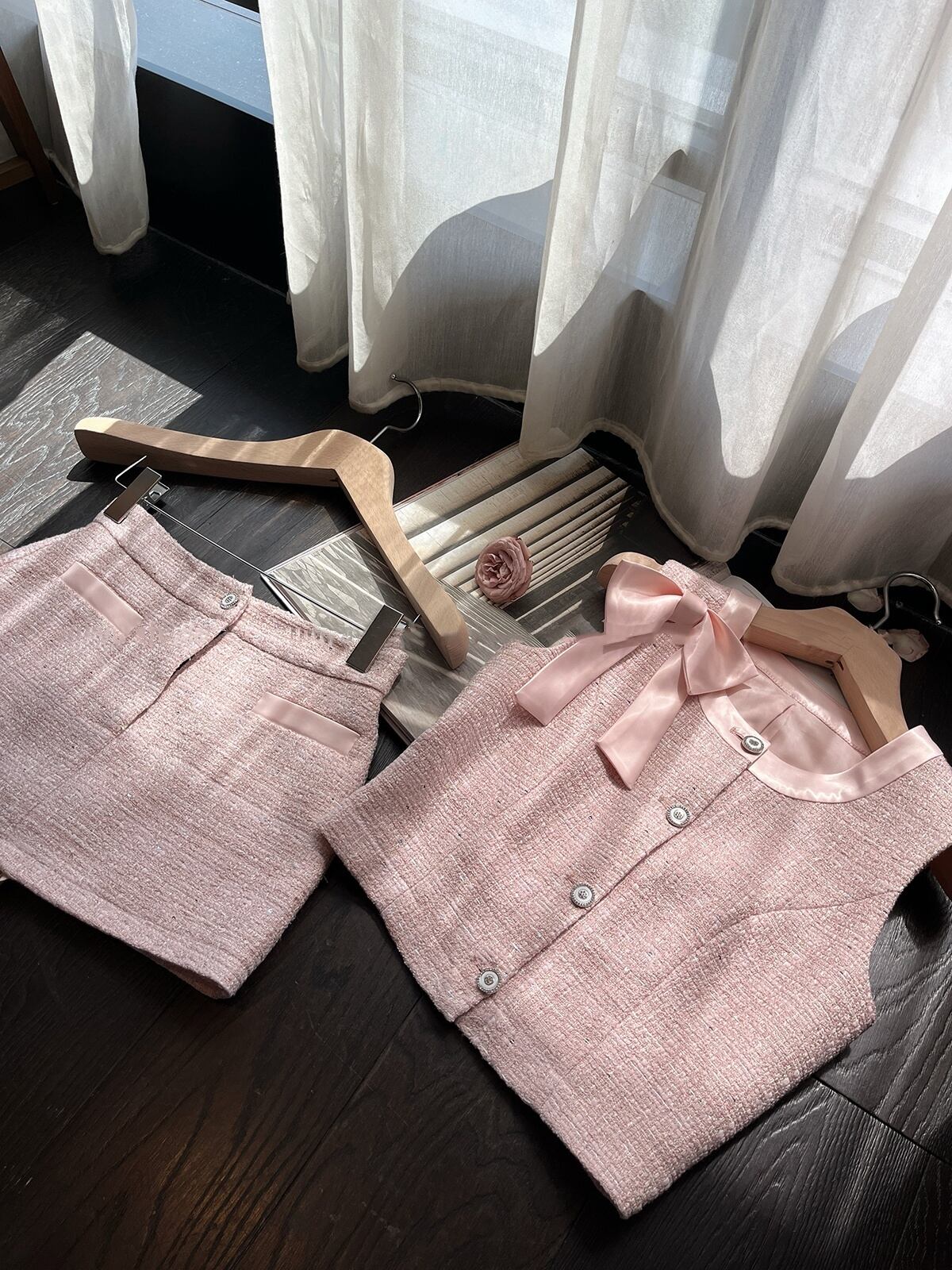 フレンチスモールフレグランスツーピースセットスウィートリボントップ+スカート2点セット衣装Conjuntos Cortos 大人ガーリー キュート カジュアル