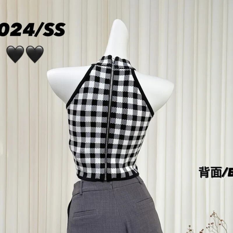 2024 夏フランス Y2K ニットタンクトップボトム Tシャツ Hotsweet セクシーノースリーブセーター Tシャツ 大人ガーリー スウィート キュート カジュアル サマー 夏物