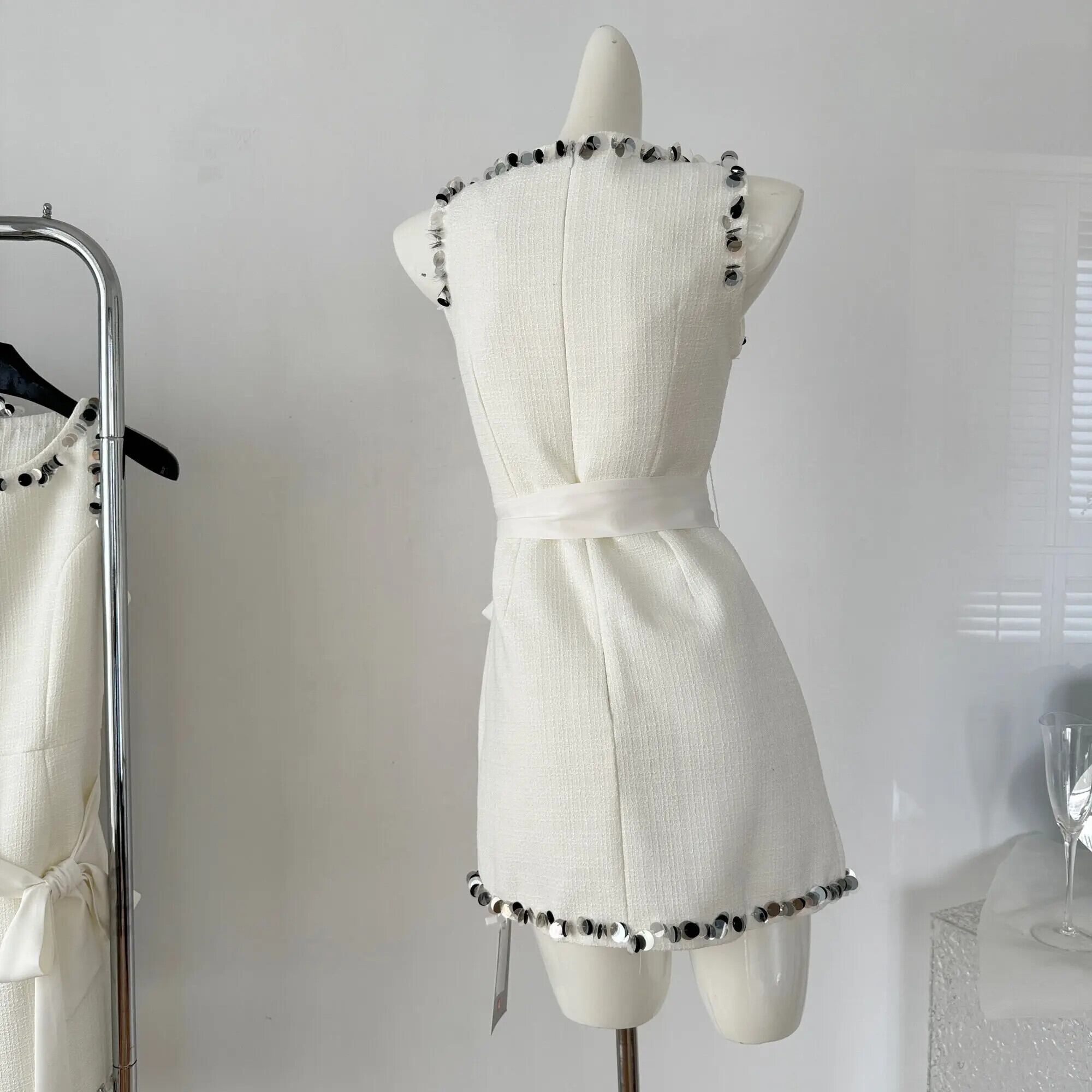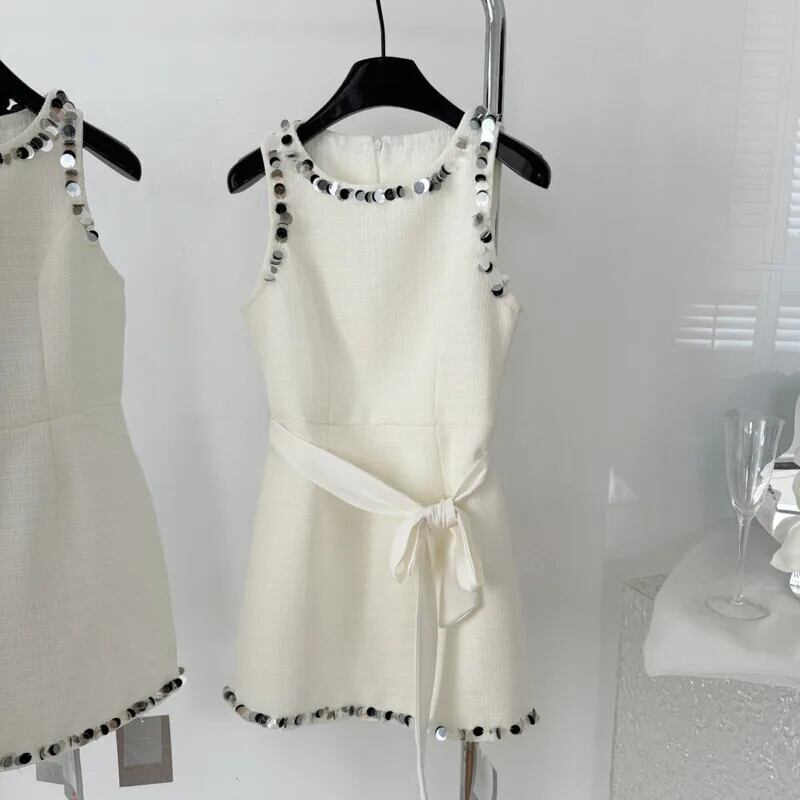 夏 2024 フレンチスモールフレグランスツイードドレスレディ高級ミニドレスパーティー Vestido サマー 夏物