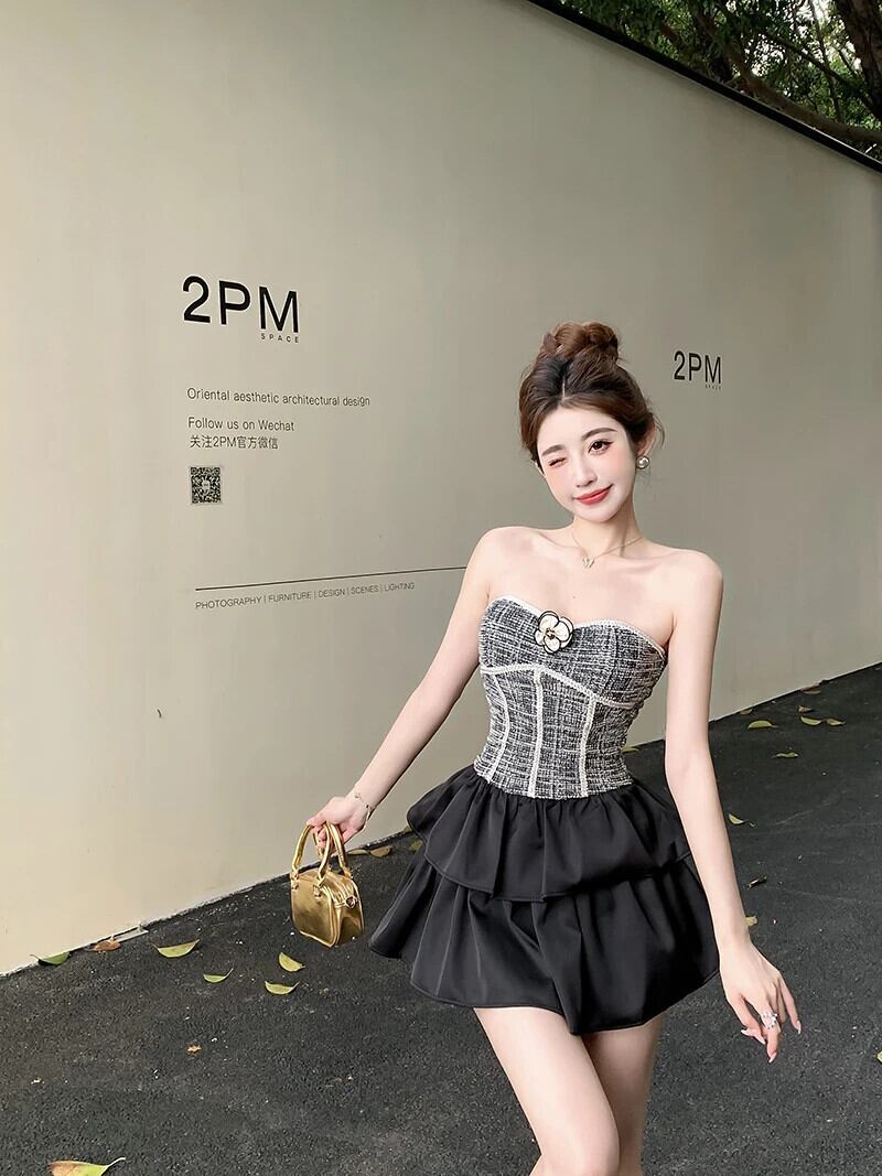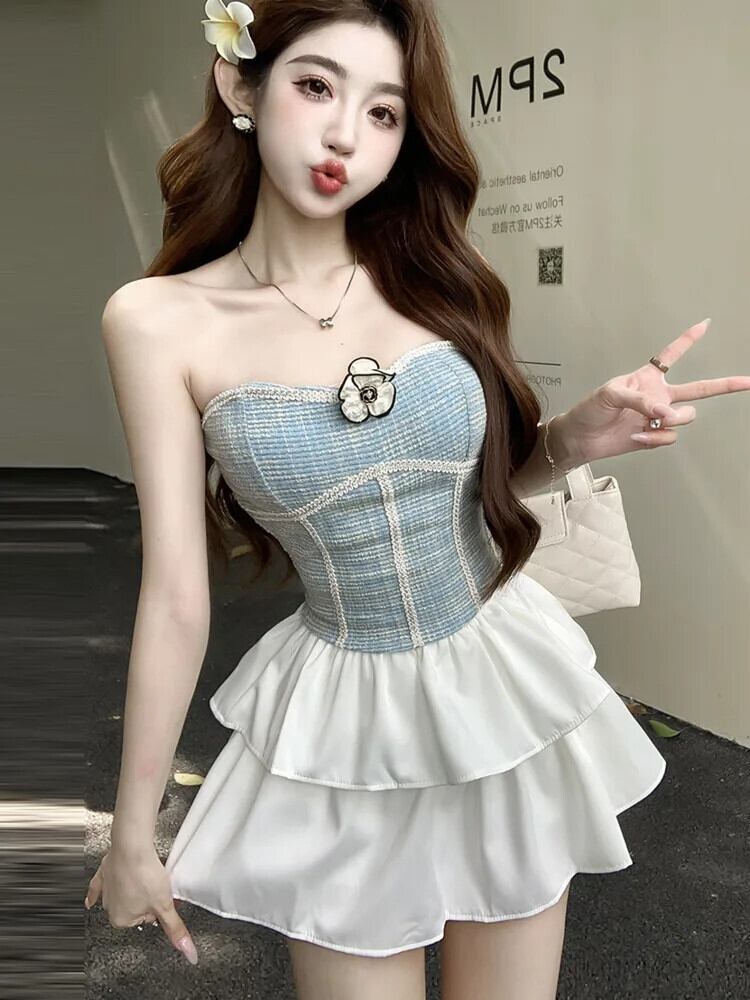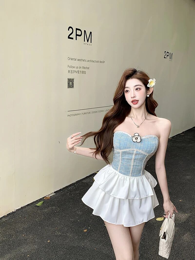 小さ香りホットスイートセクシーツーピースセットフラワーブラジャーベストトップ + ケーキスカートスーツ甘いツーピースセット衣装 大人ガーリー スウィート キュート カジュアル フラワーデザイン