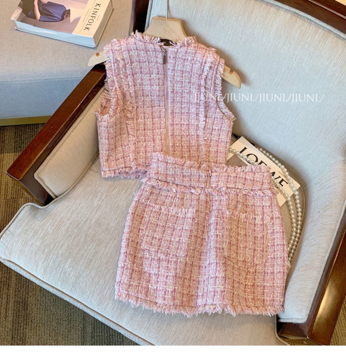 夏小さ香りツーピースセットトップ + スカートスーツ Conjuntos Cortos 2 点セット衣装 サマー 夏物