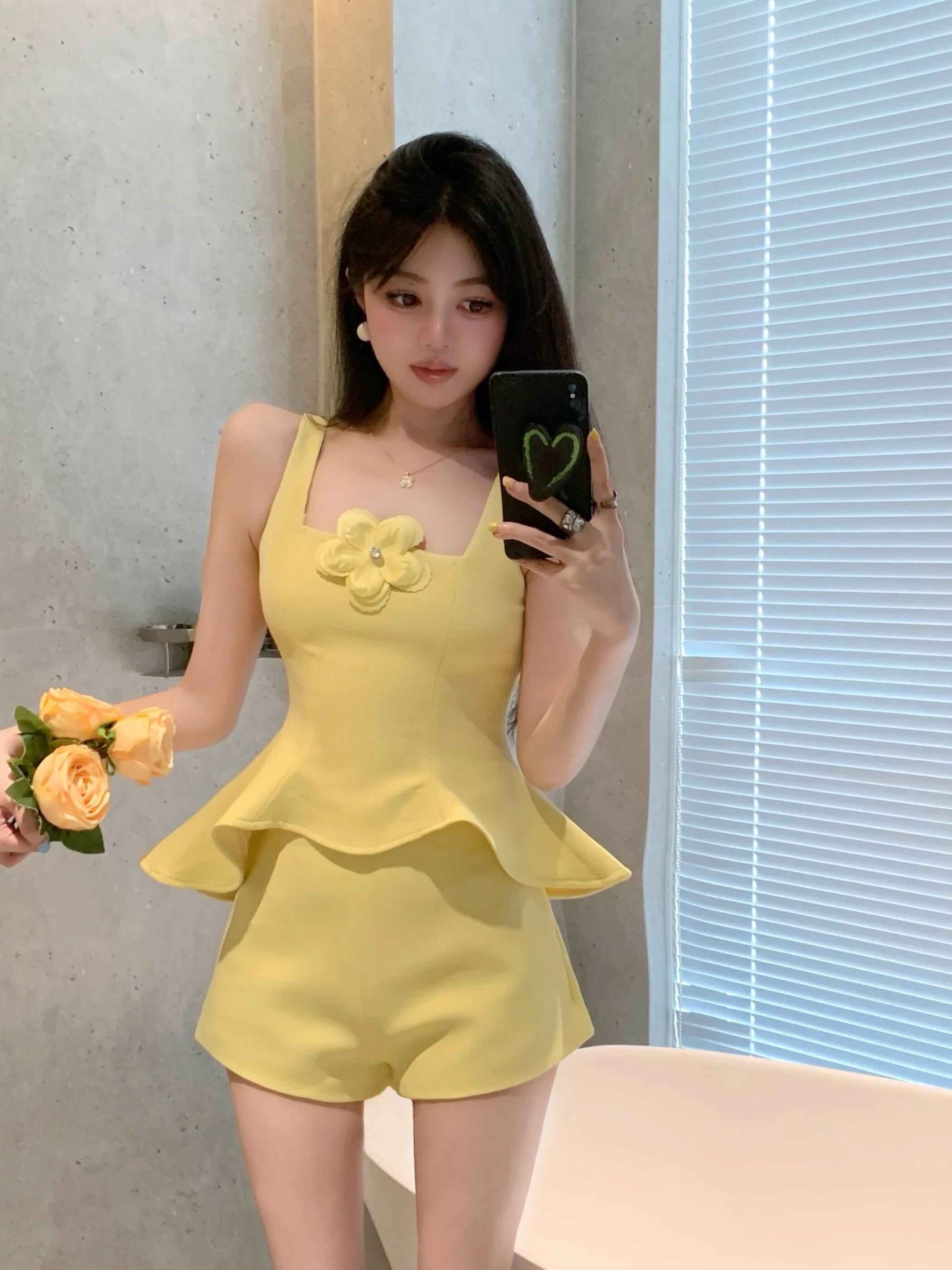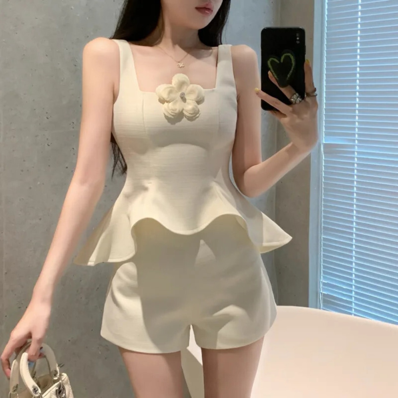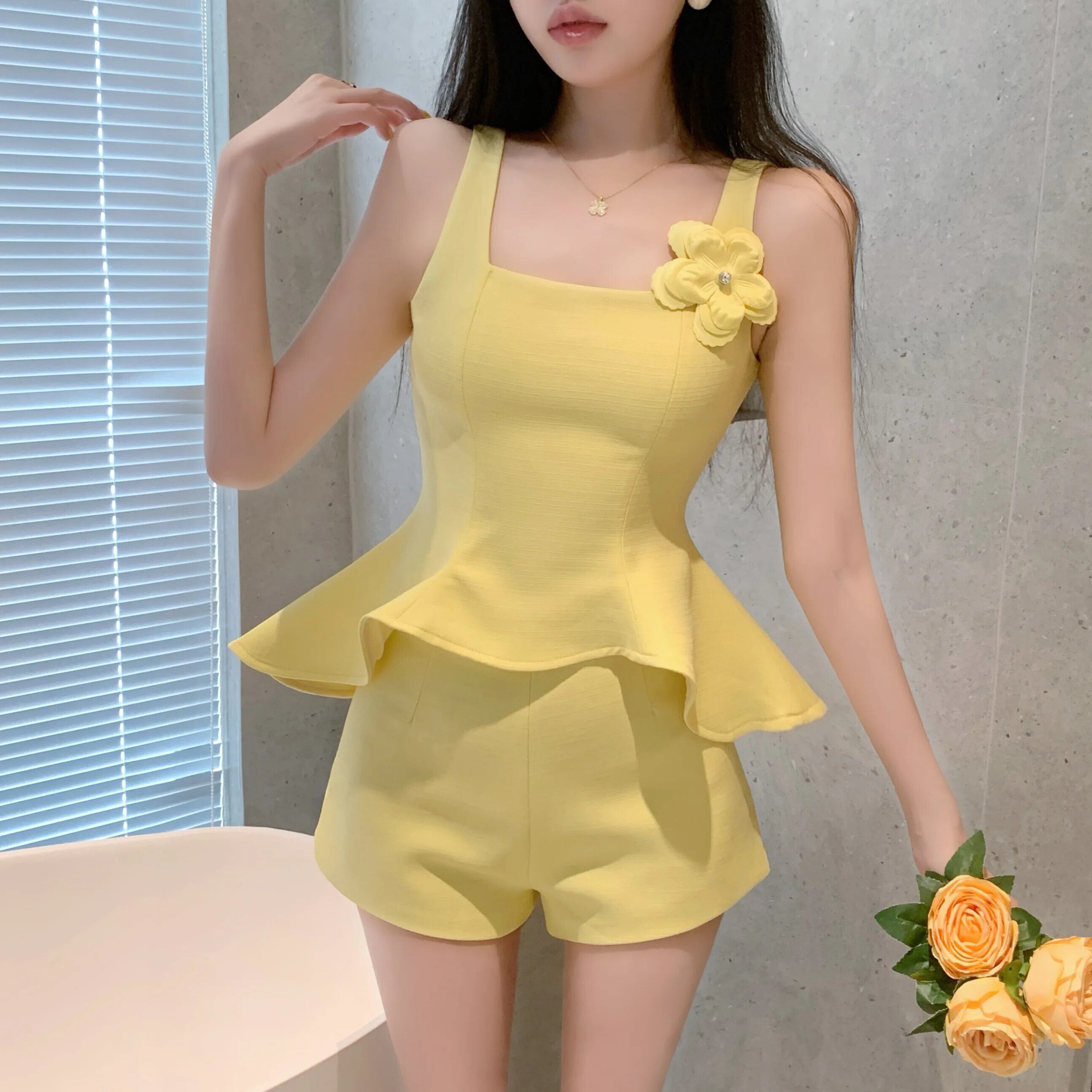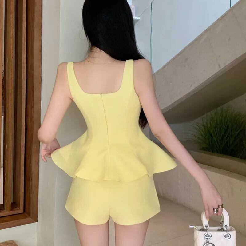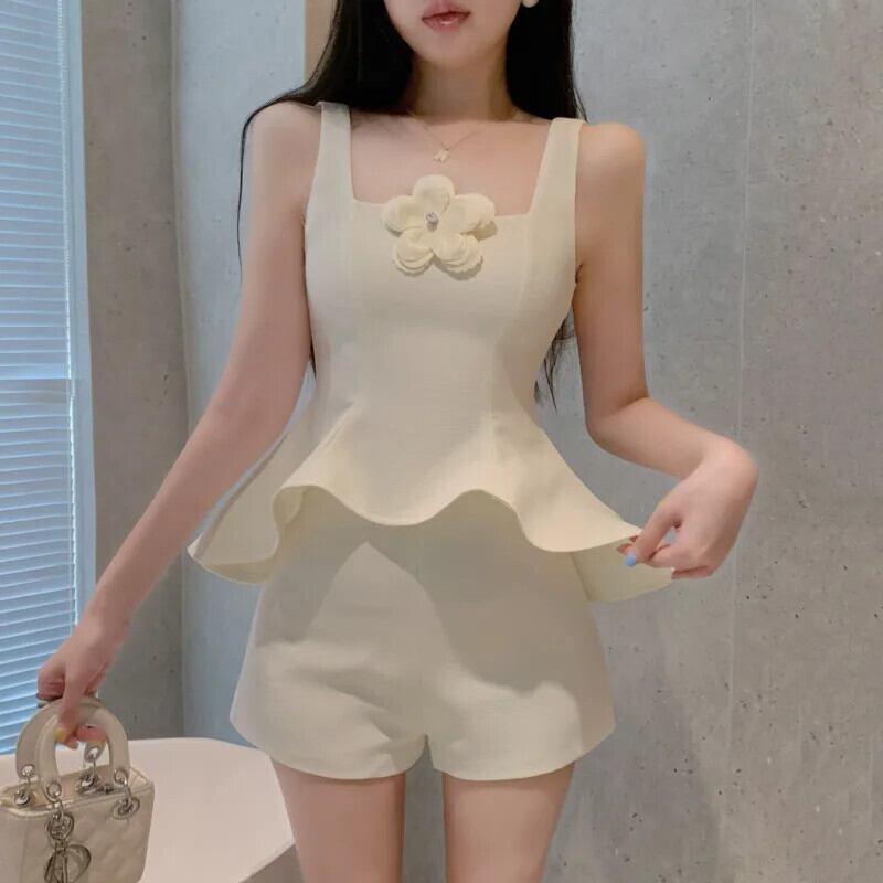 フレンチスモールフレグランスツーピースパンツセットsweetセクシータンクトップ+ショートセット甘い2ピーススーツ 大人ガーリー スウィート キュート カジュアル