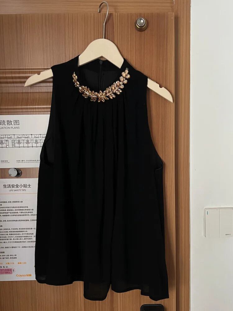 エンドフレンチラグジュアリーダイヤモンドノースリーブハンギングネックトップレディースガールルーズシャツ&ブラウスレディシフォン