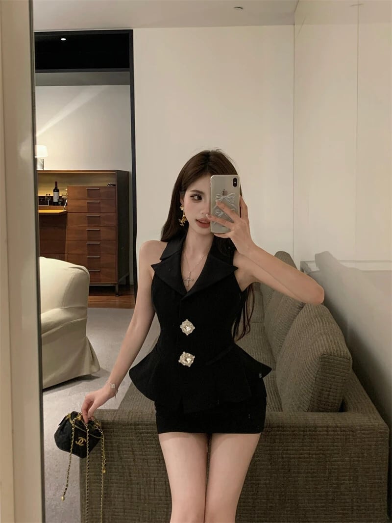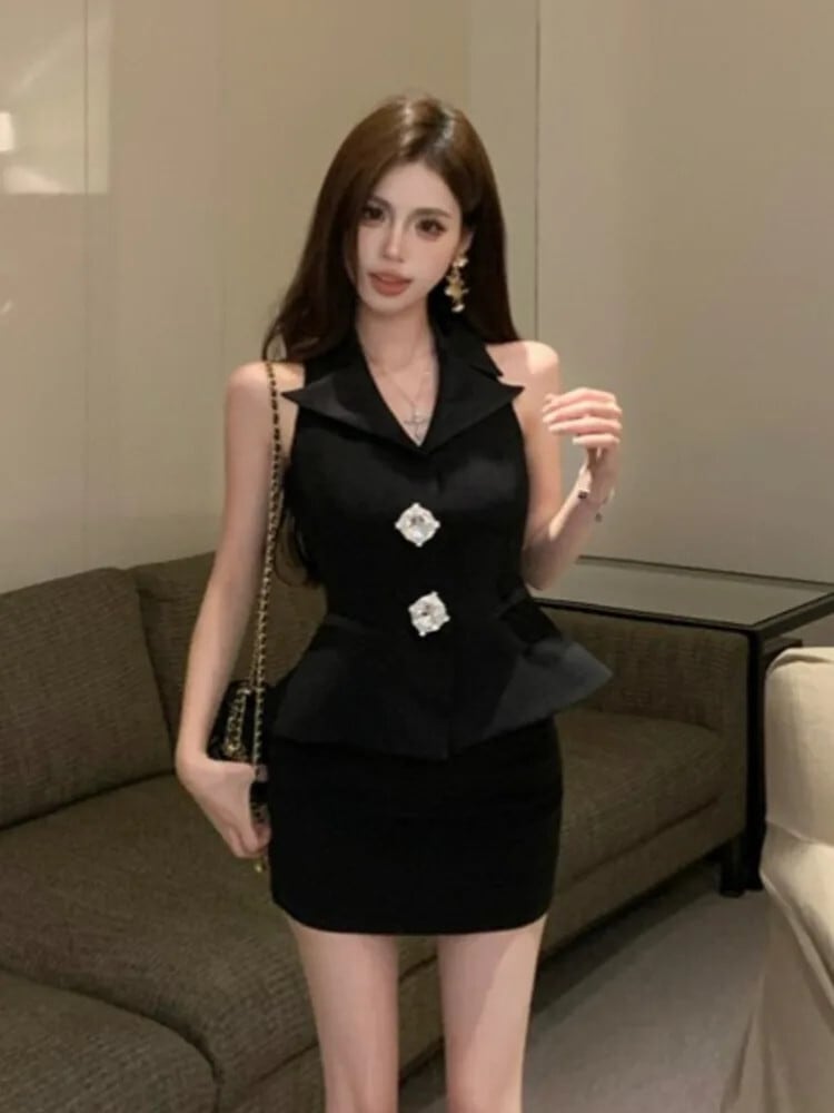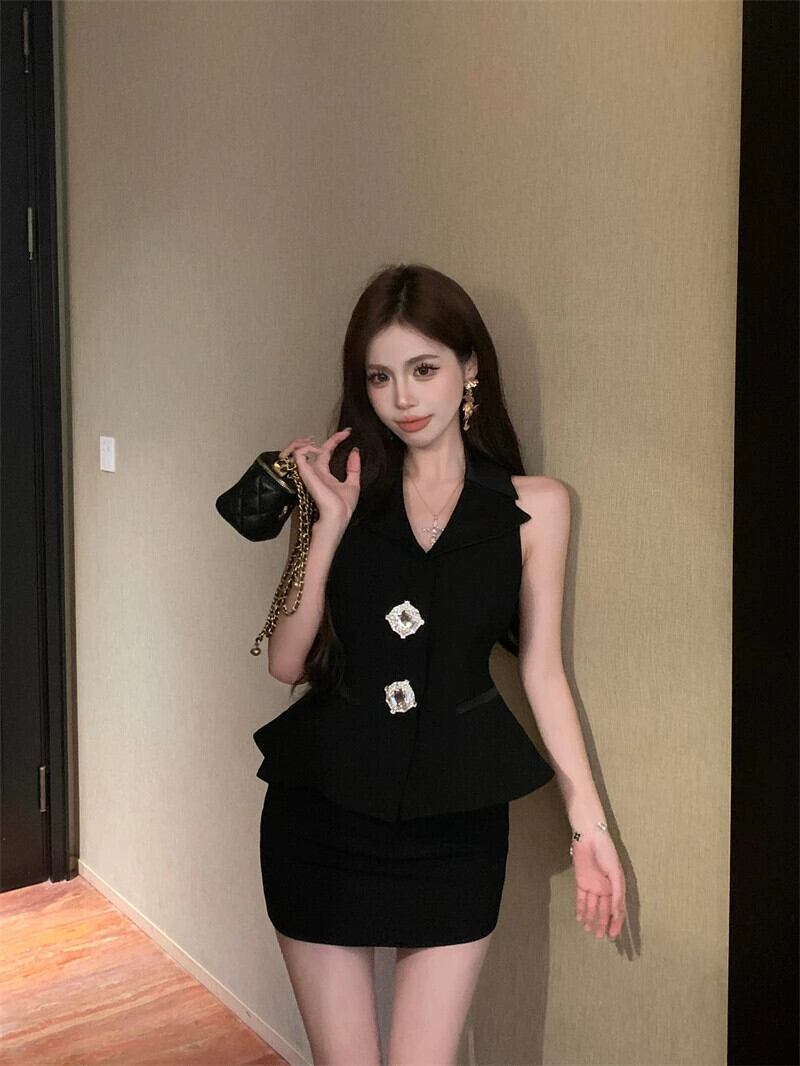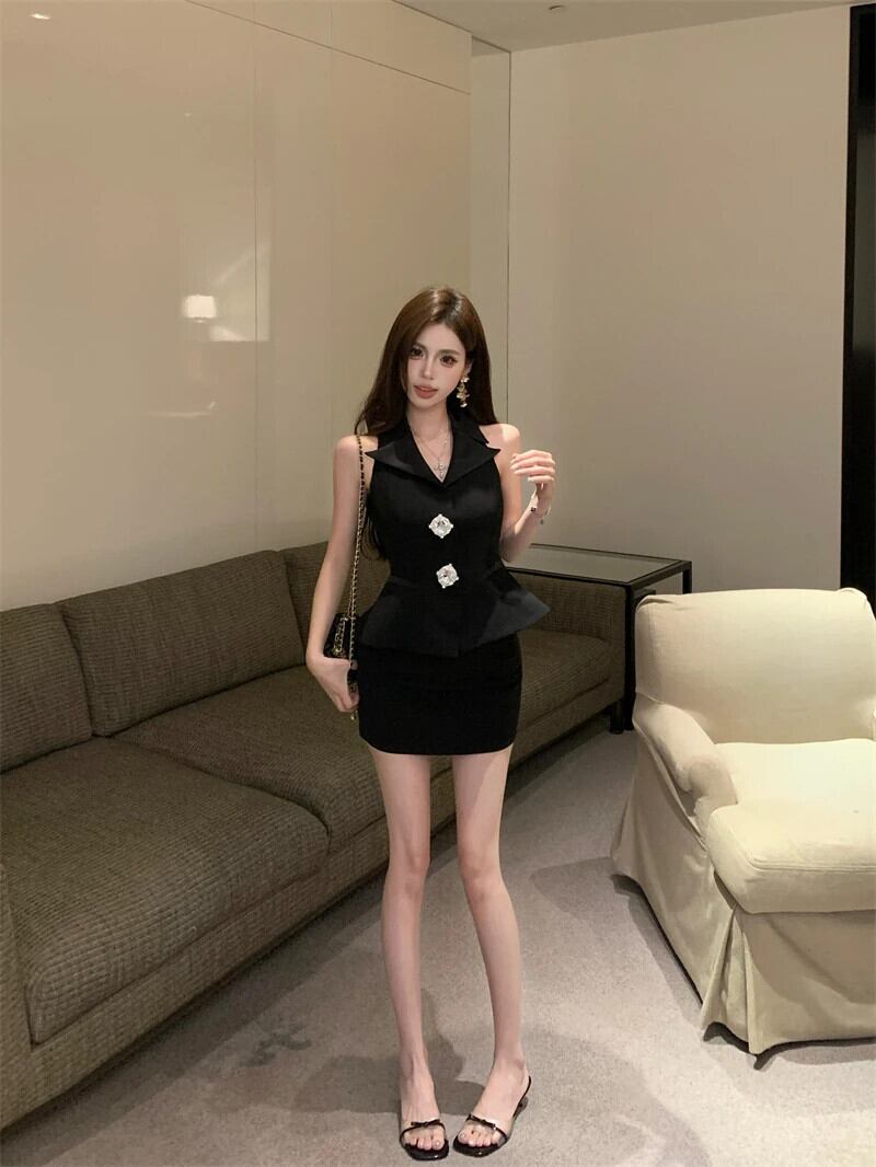 ブレザー 2 点セットノースリーブセクシーベストトップ + スカートセット夏 2 ピース衣装 サマー 夏物