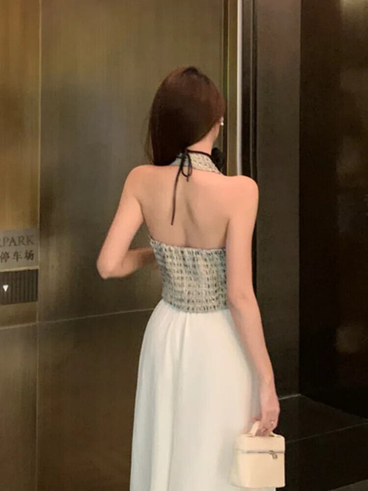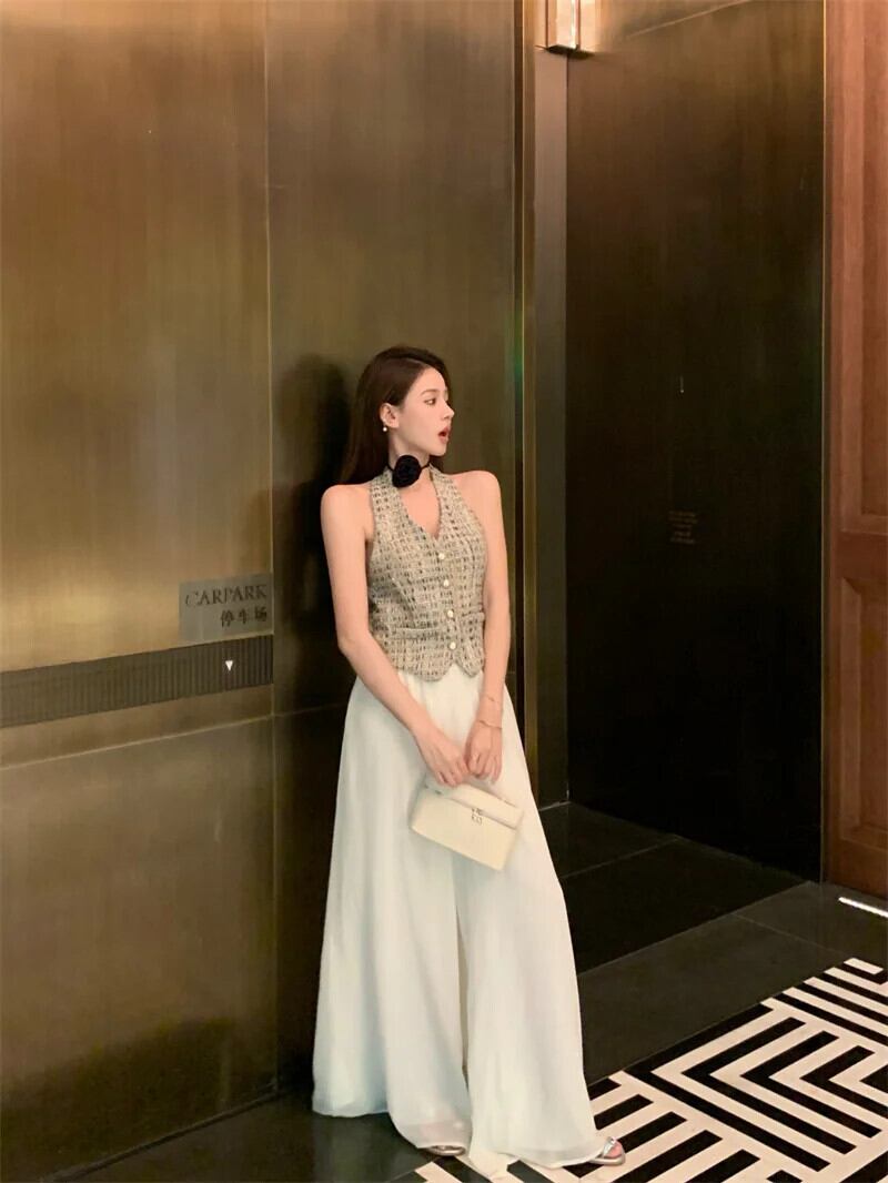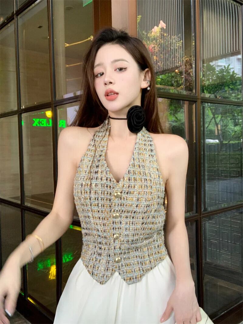 Hotsweet ノースリーブセクシー小さフレグランスツイードベストウールクロップトップスリム甘いトップス 大人ガーリー スウィート キュート カジュアル