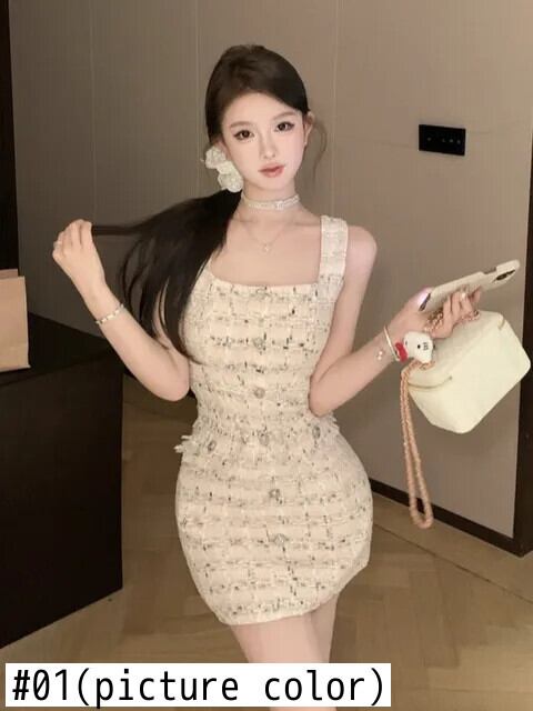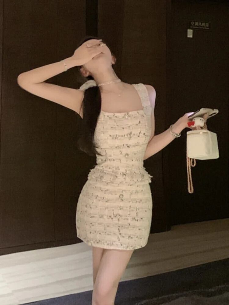 甘い小さ香りツイードドレス 2024 フレンチサマードレス Hotsweet セクシータンクパーティードレス 大人ガーリー スウィート キュート カジュアル 夏物