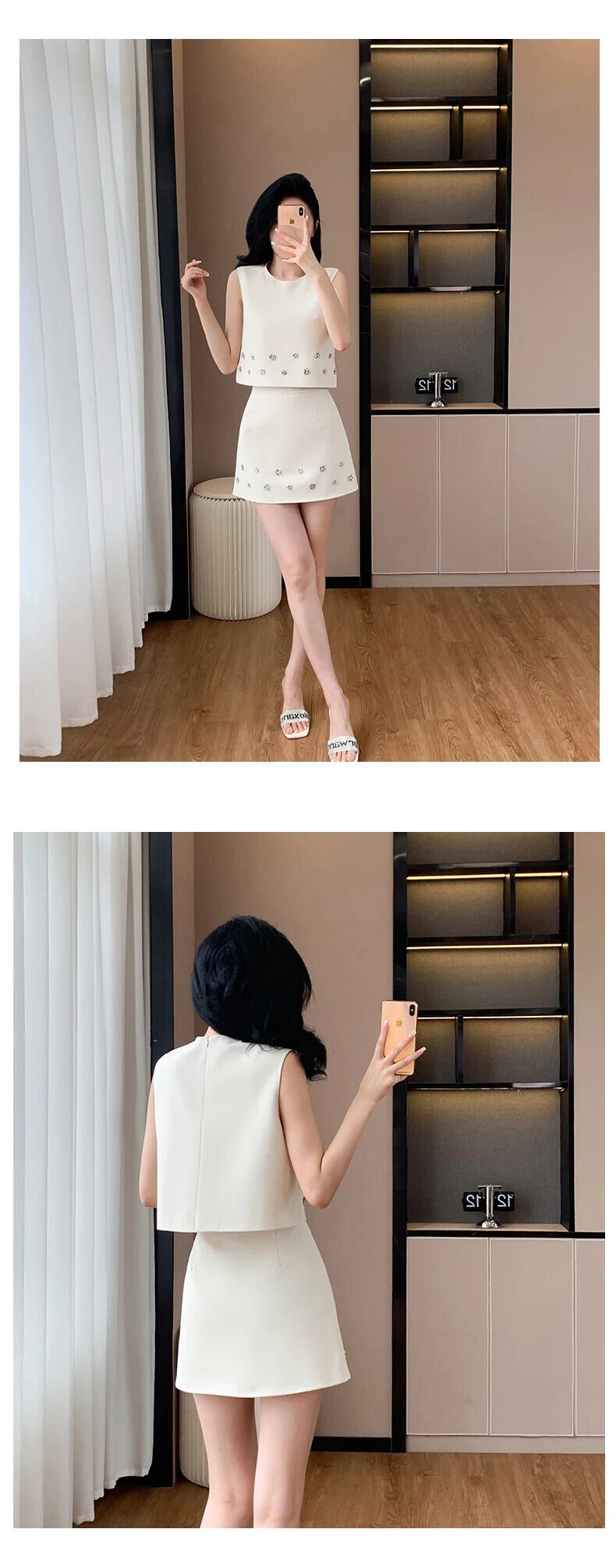 フランス小さフレグランス 2 点セット OL トップ + スカート 2 点セット衣装 Conjuntos Cortos