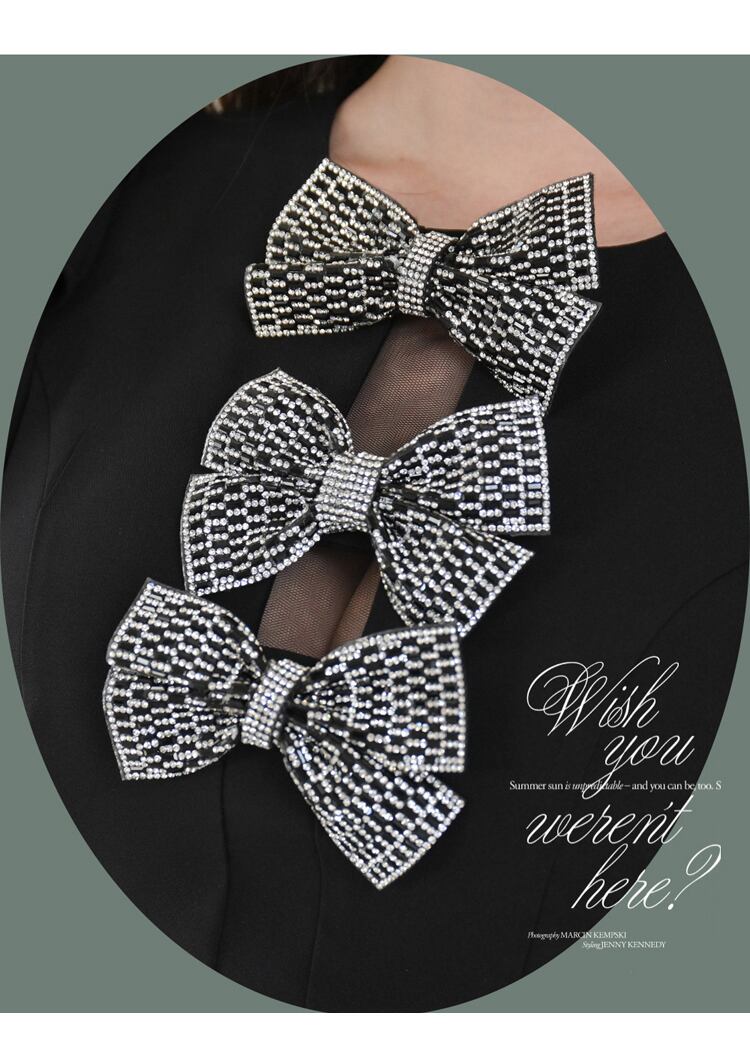 フレンチスタイルリボンバブルスリーブブラックミニドレス 2024 夏パーティーイブニングドレス サマー 夏物