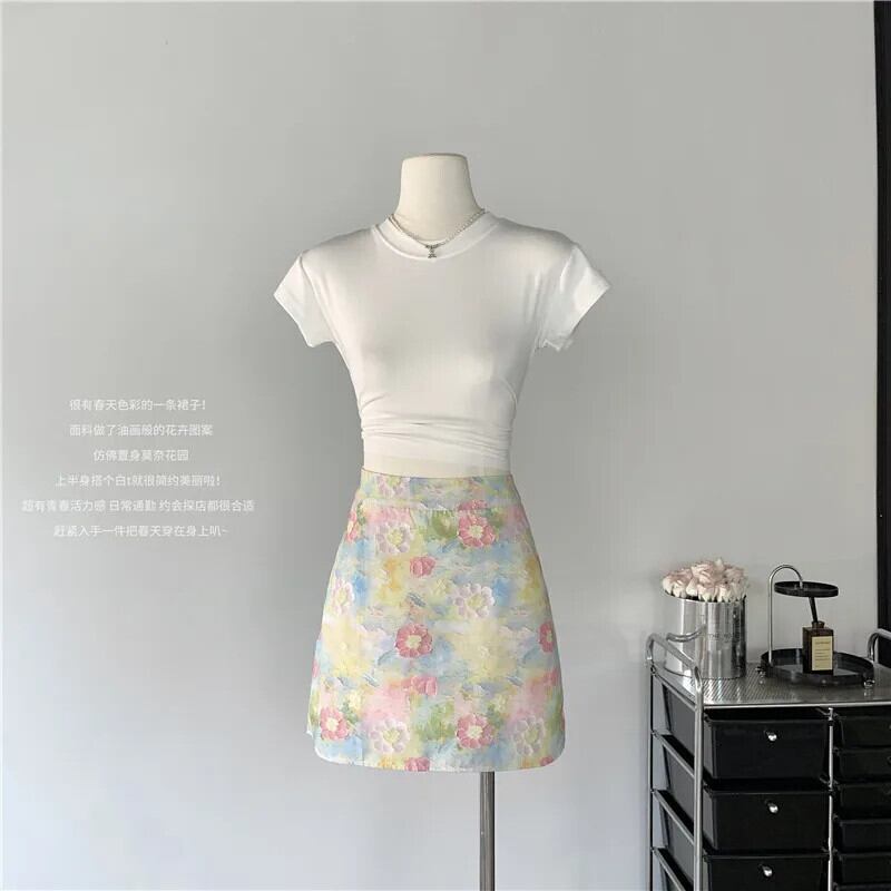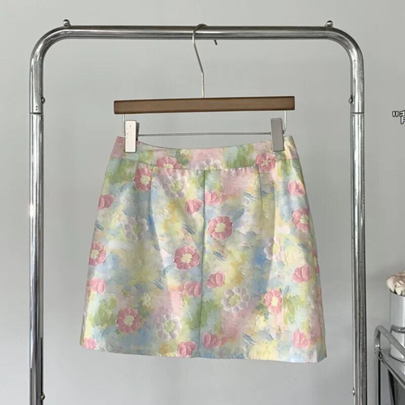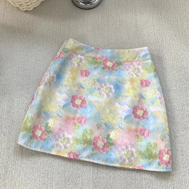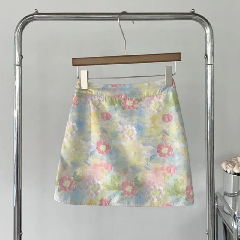 ホリデースタイル Y2k プリント花柄ミニスカート夏 2024 高級ロマンチック甘いスリム A ラインスカート 大人ガーリー スウィート キュート カジュアル サマー 夏物 Aライン