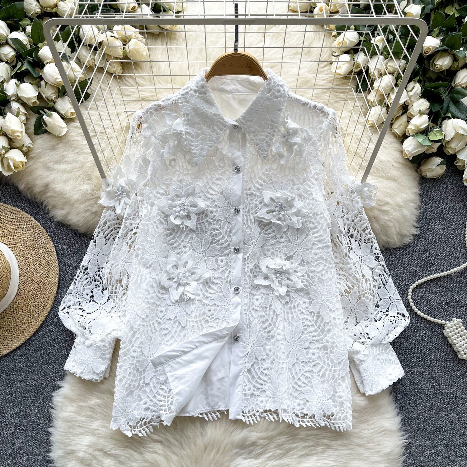 ストリートシックレディース長袖シャツ&ブラウスレースオールマッチルーズトップ ロング
