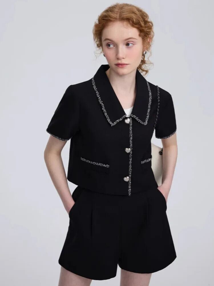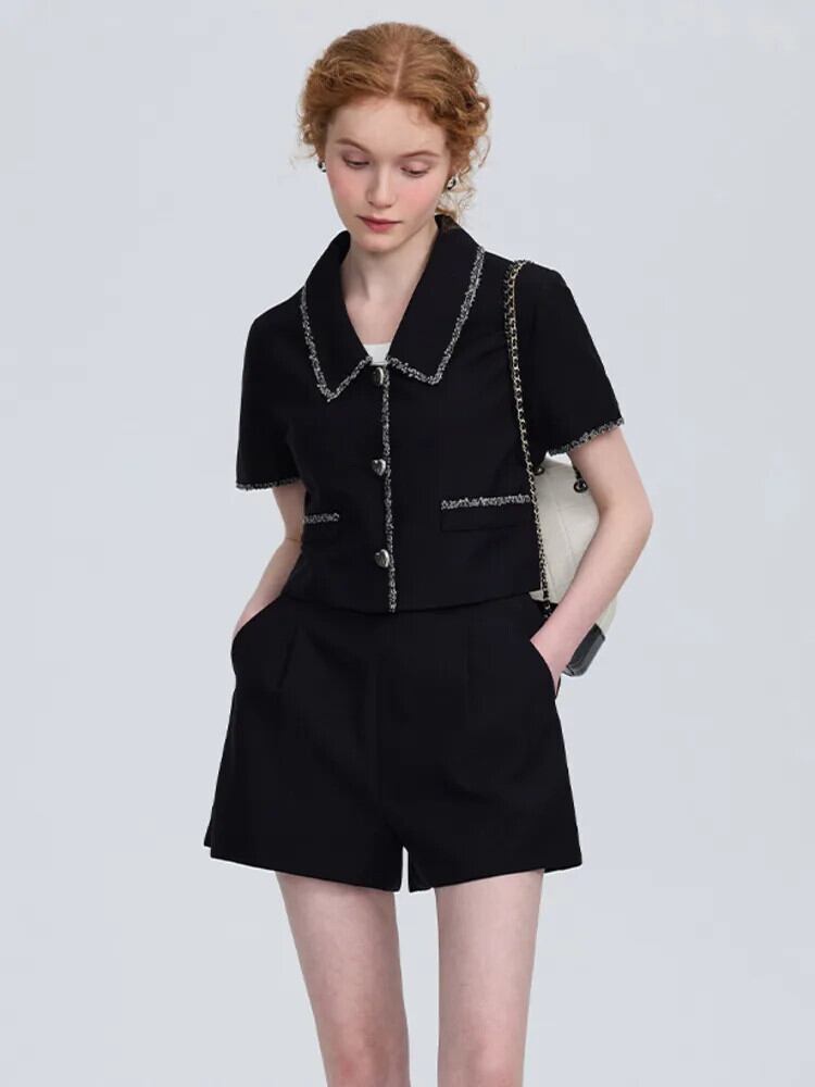 ストリートフレンチスモールフレグランスツーピースセットクロップトップ+ショートセット夏2ピースパンツセット サマー 夏物