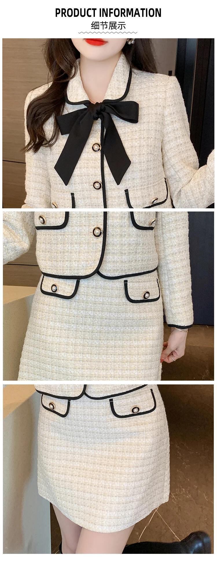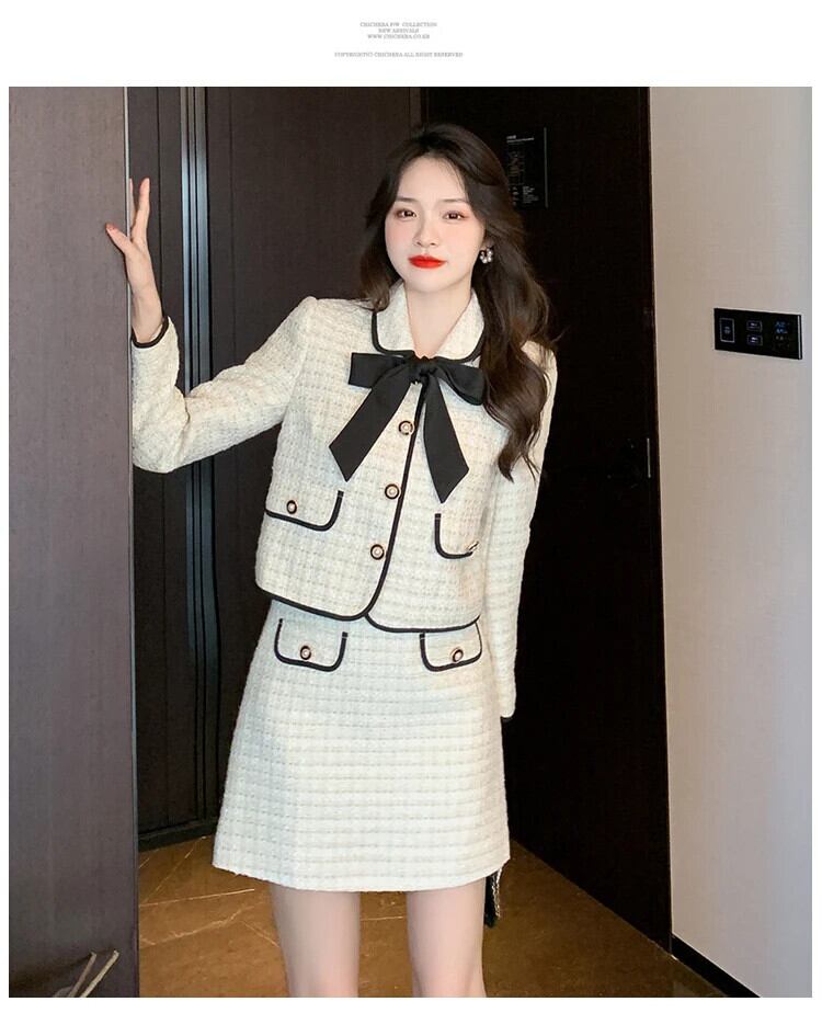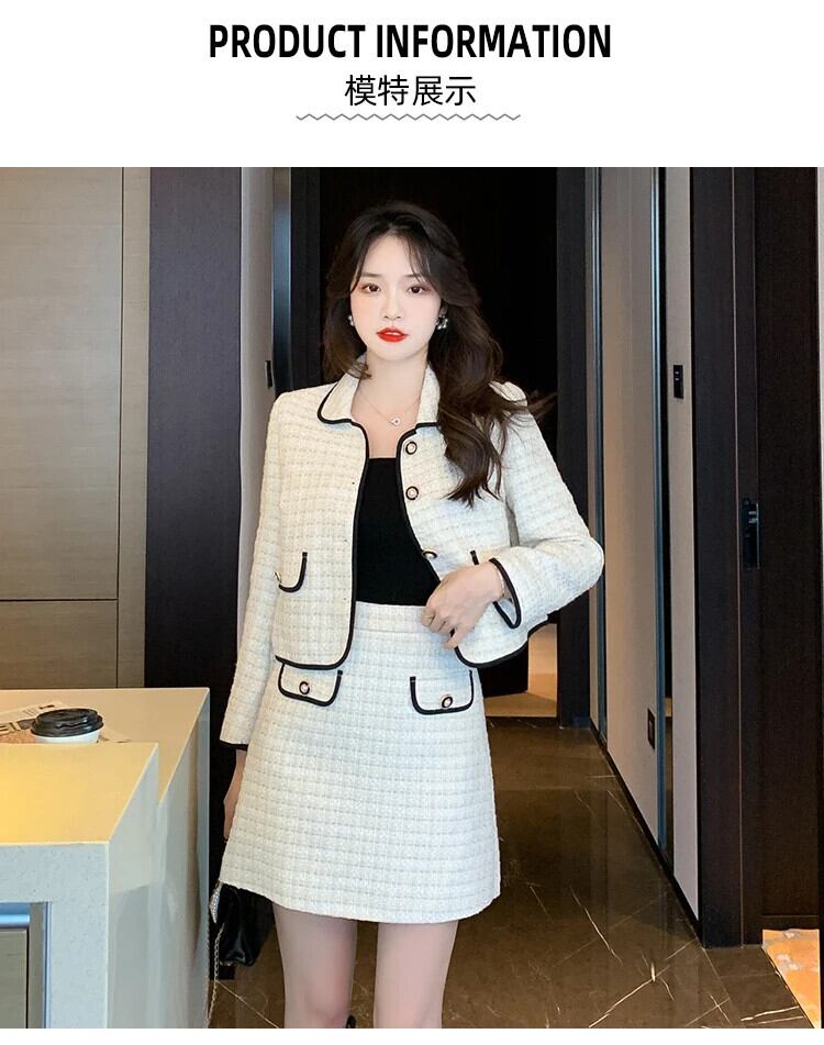 小さフレグランスツイード 2 点セット衣装ショートジャケットコート + スカートスーツフレンチツーピースセット