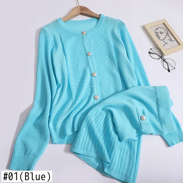 2024 秋フレンチニット 2 点セット衣装セーターカーディガン + ミニスカートスーツ Conjuntos Cortos オータム 秋物