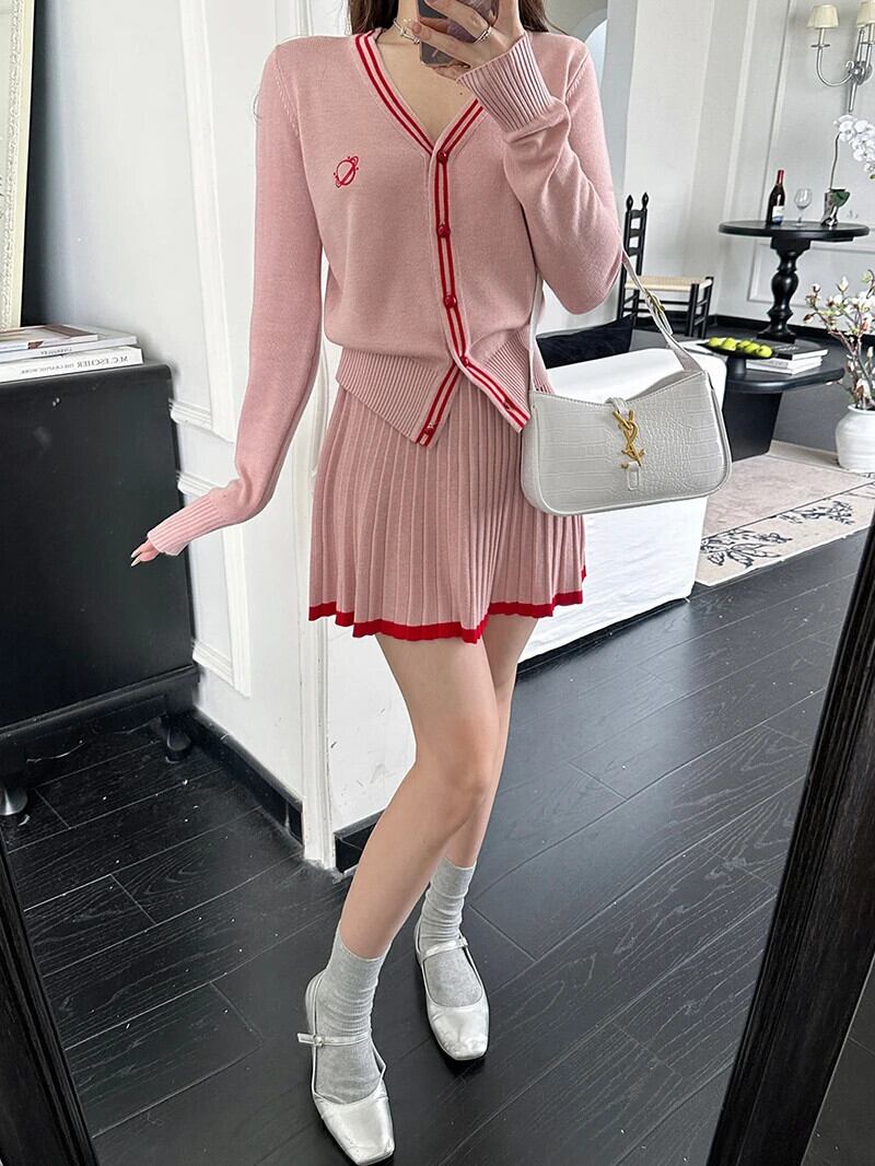 甘いニット 2 点セットセーター カーディガン + プリーツ スカート スーツ小さ香り 2 点セット 大人ガーリー スウィート キュート カジュアル