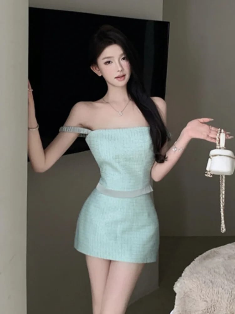 スイートツイード 2 点セットベストトップ + スカートスーツガール Hotsweet 2 ピース衣装フレンチ Conjuntos Cortos 大人ガーリー スウィート キュート カジュアル