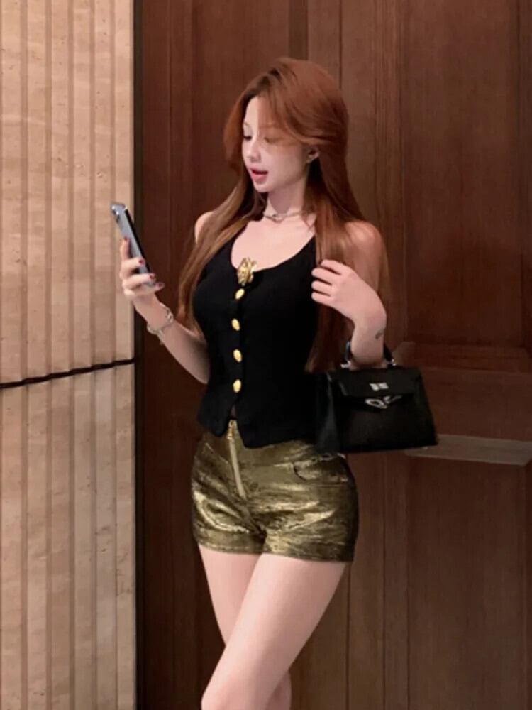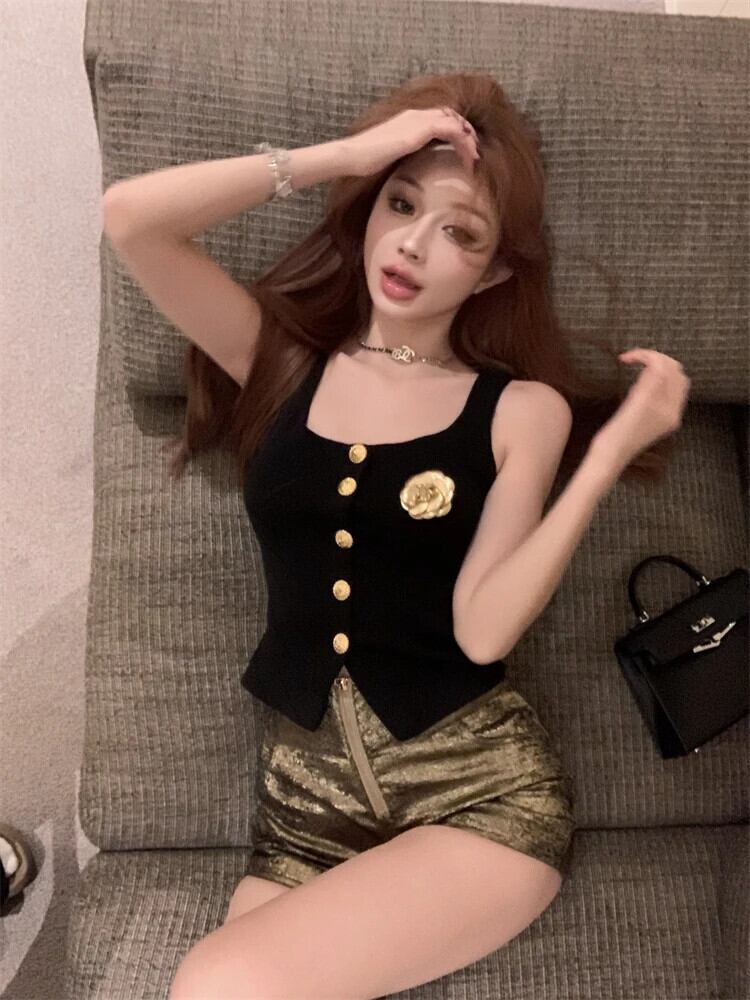 フレンチ 2 ピース パンツ セットキャミソール ベスト トップス + ショーツ セットツーピース パンツ スーツ ブルマー