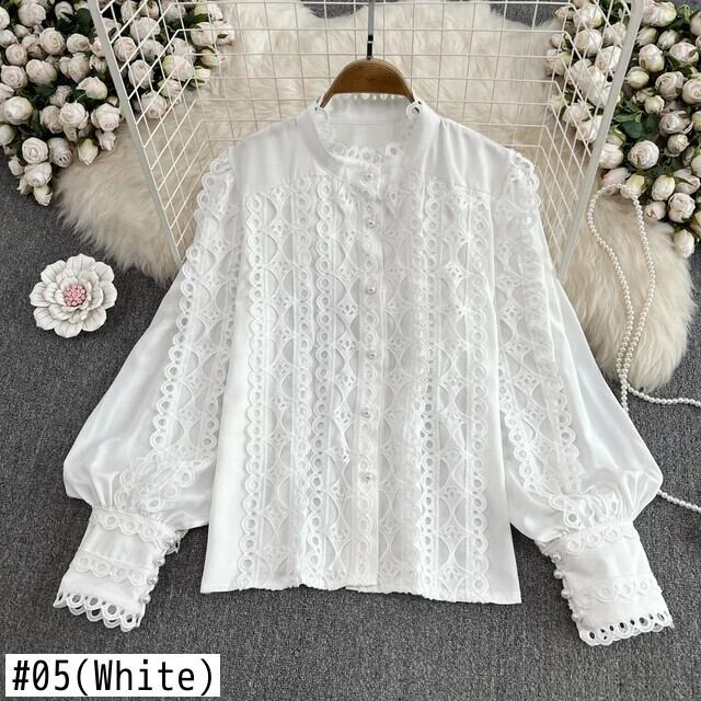 2024 秋甘いカーディガンブラウスシングルブレストランタンスリーブシャツ & ブラウストップス 大人ガーリー スウィート キュート カジュアル オータム 秋物