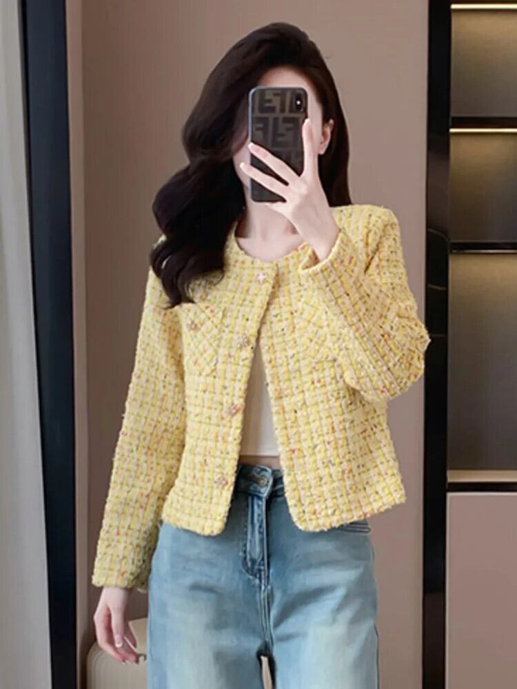 秋冬フレンチスイートツイードジャケット高級ウールコートアウター Casacos Chaqueta 大人ガーリー スウィート キュート カジュアル ウィンター 冬物