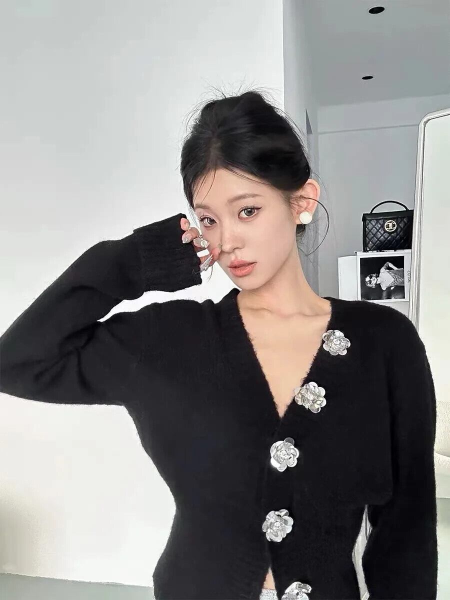 2024 Herbst 冬 Damen Strickjacke マンテル モード ローズ クノプフェ プルオーバー フラウエン ストリート Langarm トップス 生き抜くプル ウィンター 冬物