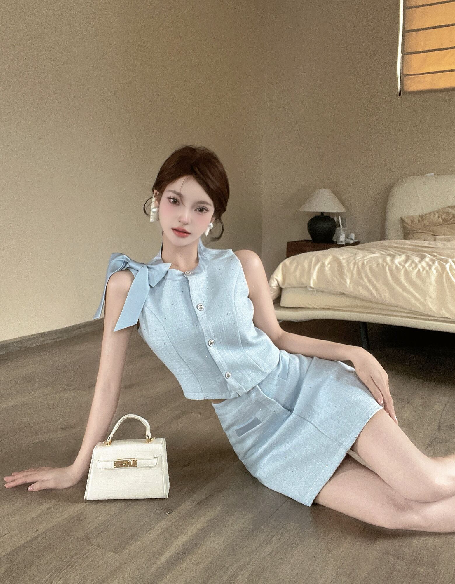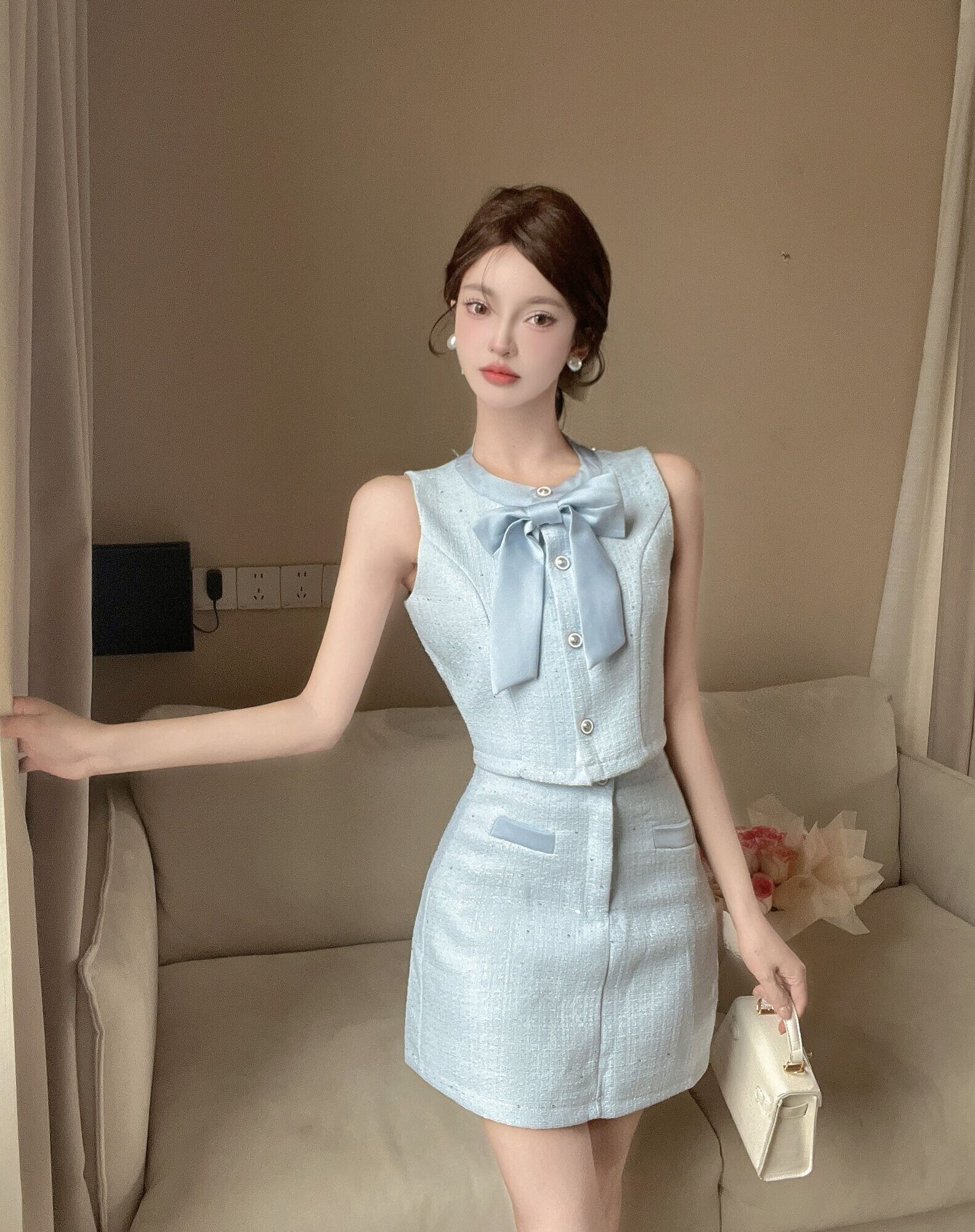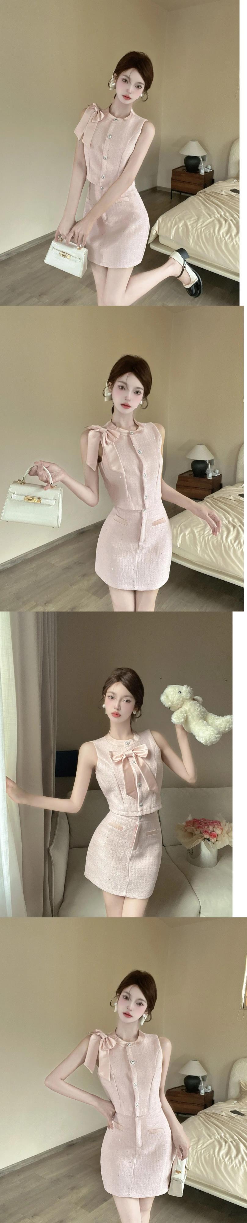 Hoge Kwaliteit Hotsweet Franse Kleine Geur ツイード Tweedelige セット Voor Vrouwen Strik セクシートップ + Rok Pakken Meisje Sweet 2-delige 衣装 大人ガーリー スウィート キュート カジュアル
